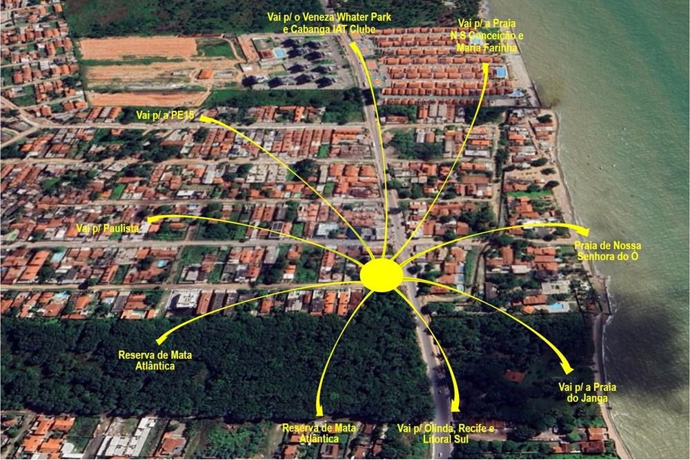 Localização estratégica: as margens da Av. Principal, a aproximadamente 150m da praia, próximo a igrejas, escolas, comércio, hospitais, transporte público e com fácil acesso à PE-001.