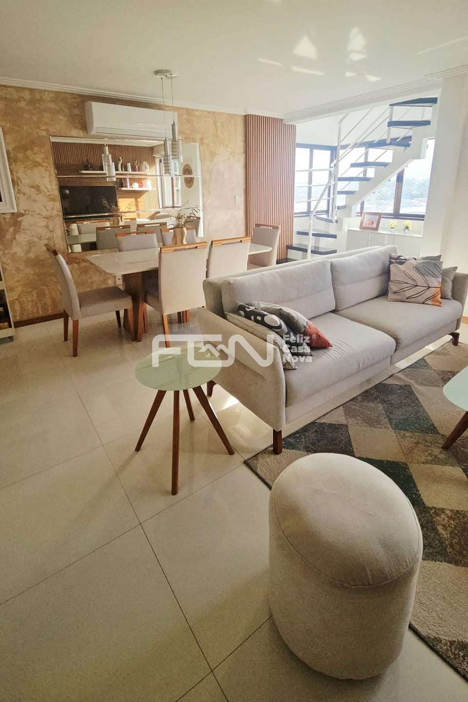 Ampla sala de estar e jantar integrada
