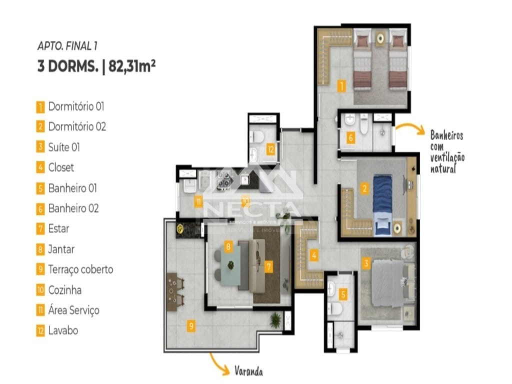 Apartamento à Venda com 3 quartos, 82 m² por R$ 735.000