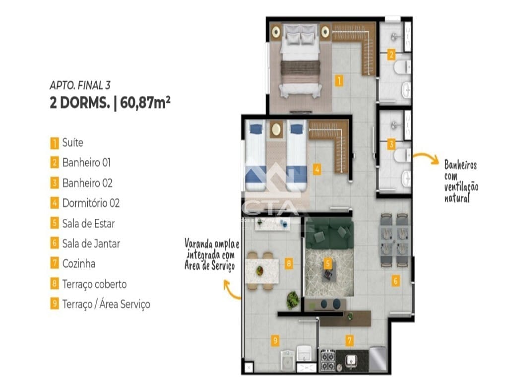 As características do imóvel são simplesmente encantadoras. Além dos 3 dormitórios, você terá uma QtdSalas de jantar ampla integrada à QtdSalas de estar, proporcionando espaços perfeitos para receber amigos e familiares. A cozinha americana é moderna e funcional, e a área de serviço é prática e espaçosa. Para aproveitar ainda mais os momentos de lazer, você contará com uma varanda gourmet, perfeita para churrascos e momentos de descontração. E, é claro, não poderia faltar uma vaga de garagem para o seu conforto.