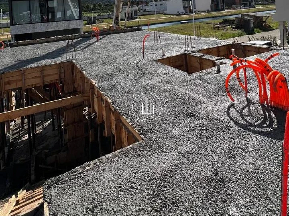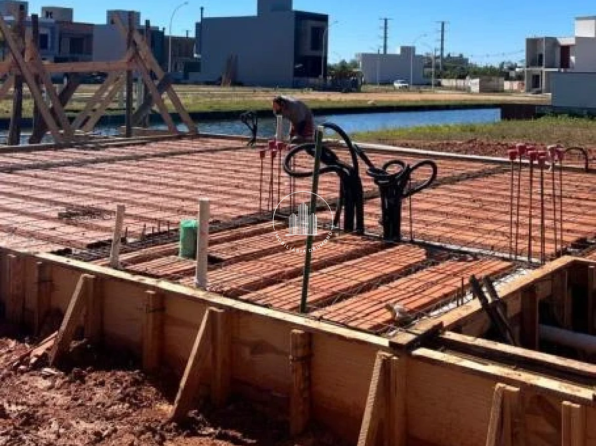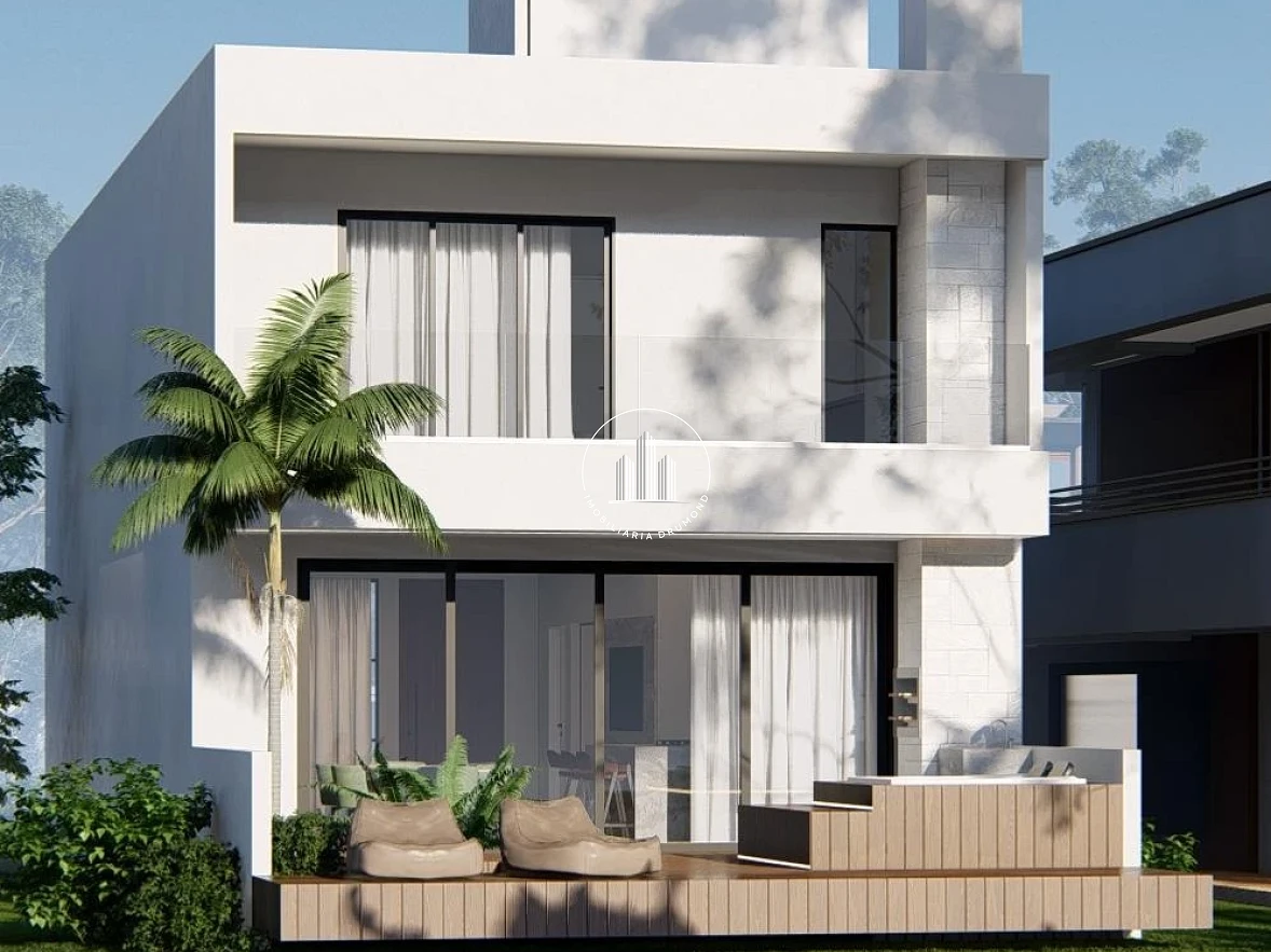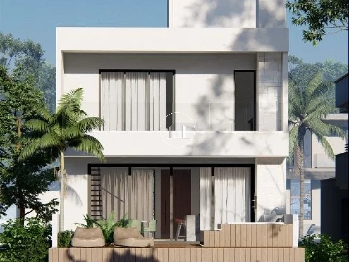 Casa moderna de 206,05 m², com dois pavimentos, localizada em Deltaville, Biguaçu. O imóvel conta com cozinha, sala de jantar e estar integradas, lavabo, lavanderia e varanda com churrasqueira e jacuzzi, além de deck com vista para o lago e garagem coberta para dois veículos. No pavimento superior, possui suíte ampla com closet e sacada, dois dormitórios e banheiro social. Acabamentos de qualidade, com porcelanato classe A, forro de gesso, esquadrias em alumínio preto, persianas automatizadas, pé-direito duplo e jardim interno.