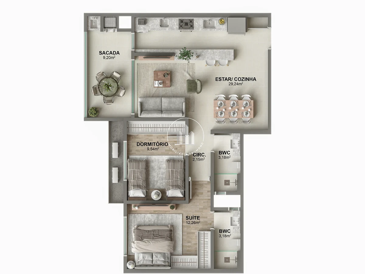 O condomínio fechado conta com lazer completo no rooftop, piscina adulto e infantil com prainha, academia, coworking, sala de jogos, brinquedoteca, playground e pet place. Áreas comuns entregues mobiliadas e climatizadas, com 2 elevadores, guarita, acesso por tag e monitoramento por câmeras. Entrega prevista para dezembro de 2026 com entrada de 15% e parcelamento direto com a construtora.