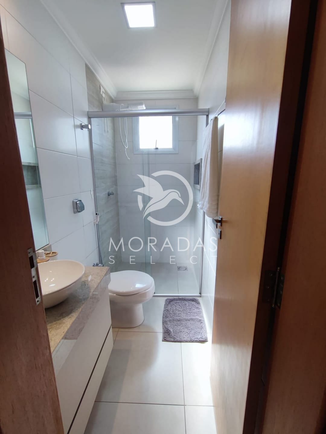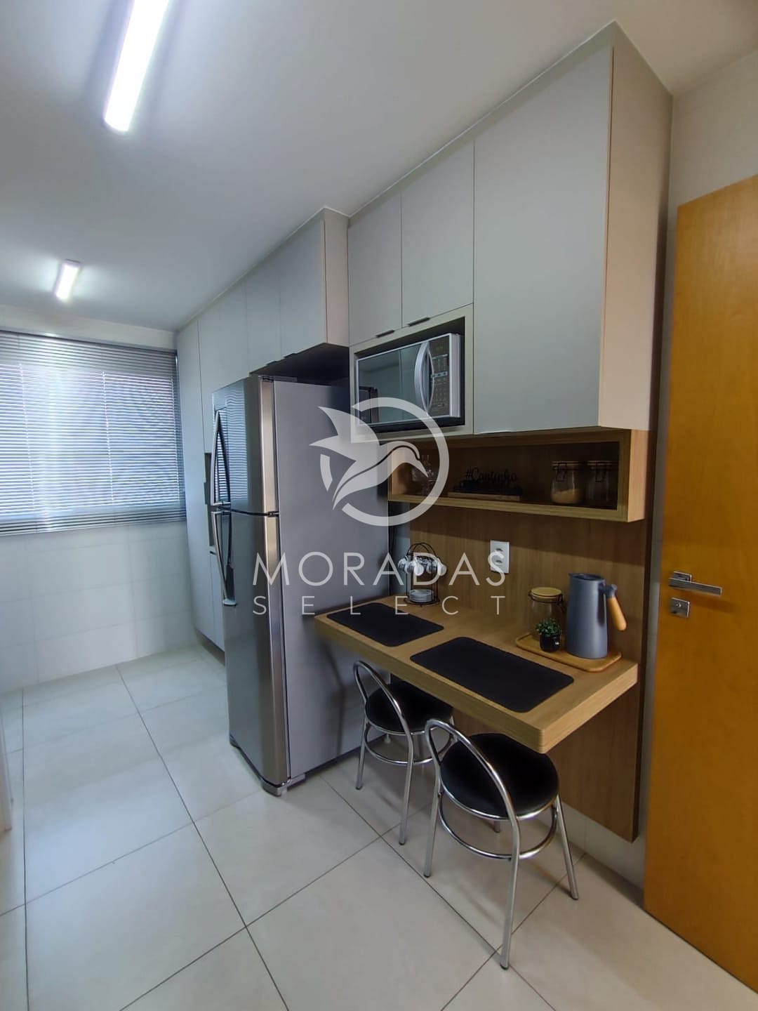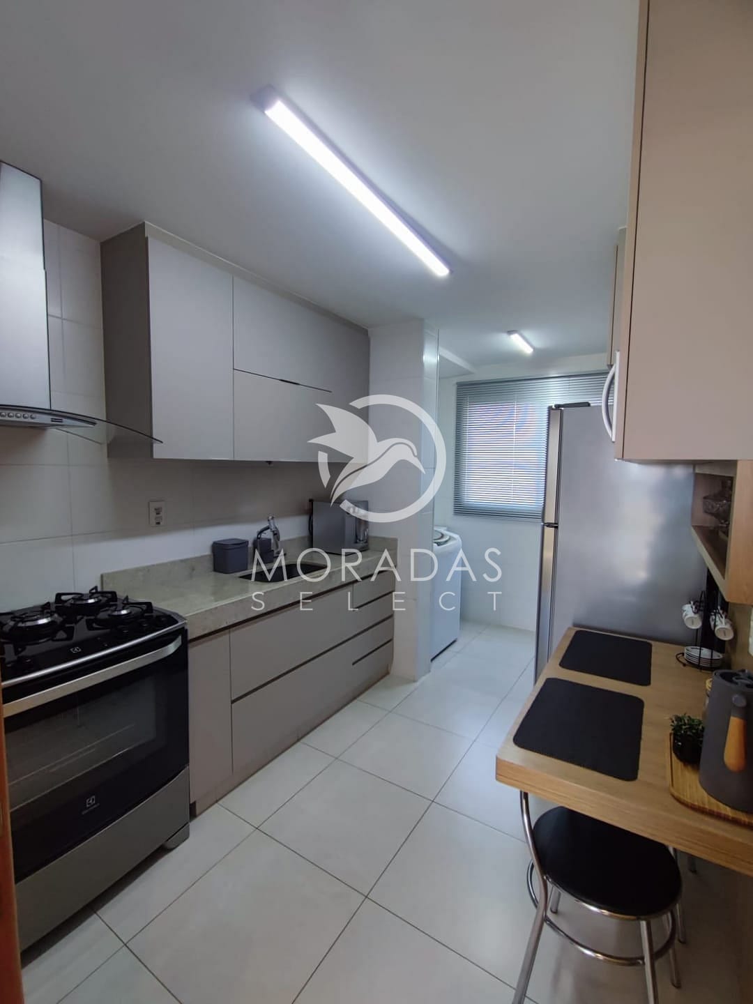 Acabamento com piso porcelanato, bancadas em granito.
