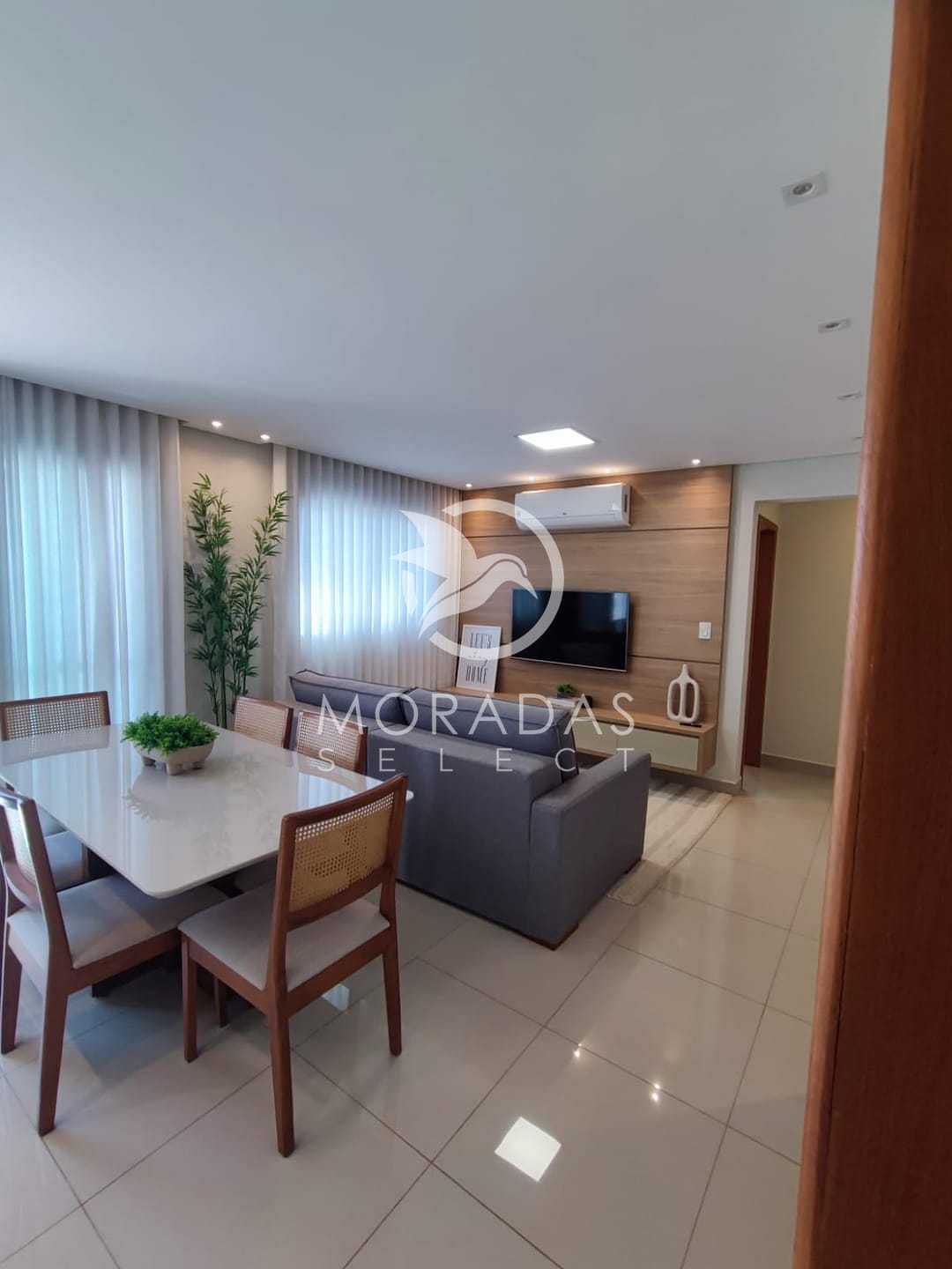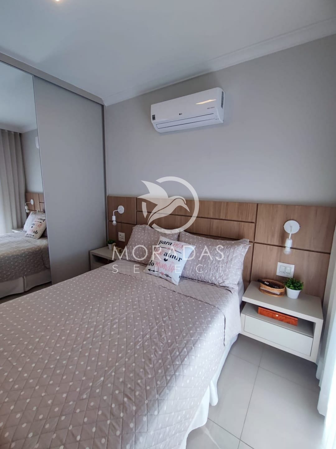 São 3 quartos sendo 1 suíte com sacada e ar condicionado, sala em 2 ambientes com sacada e ar condicionado, cozinha, banheiro social, móveis planejados em todos ambientes, 2 vagas de garagem.