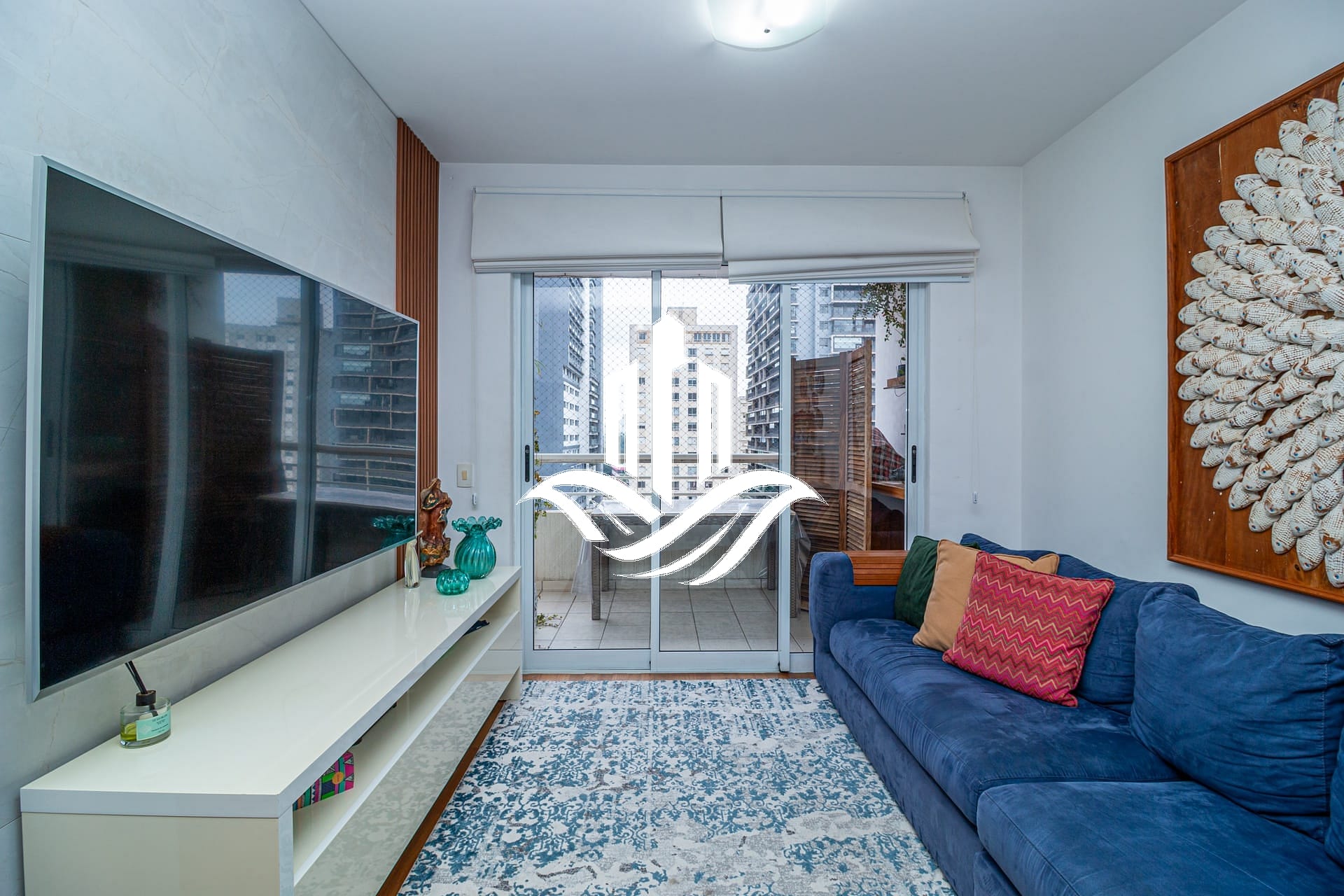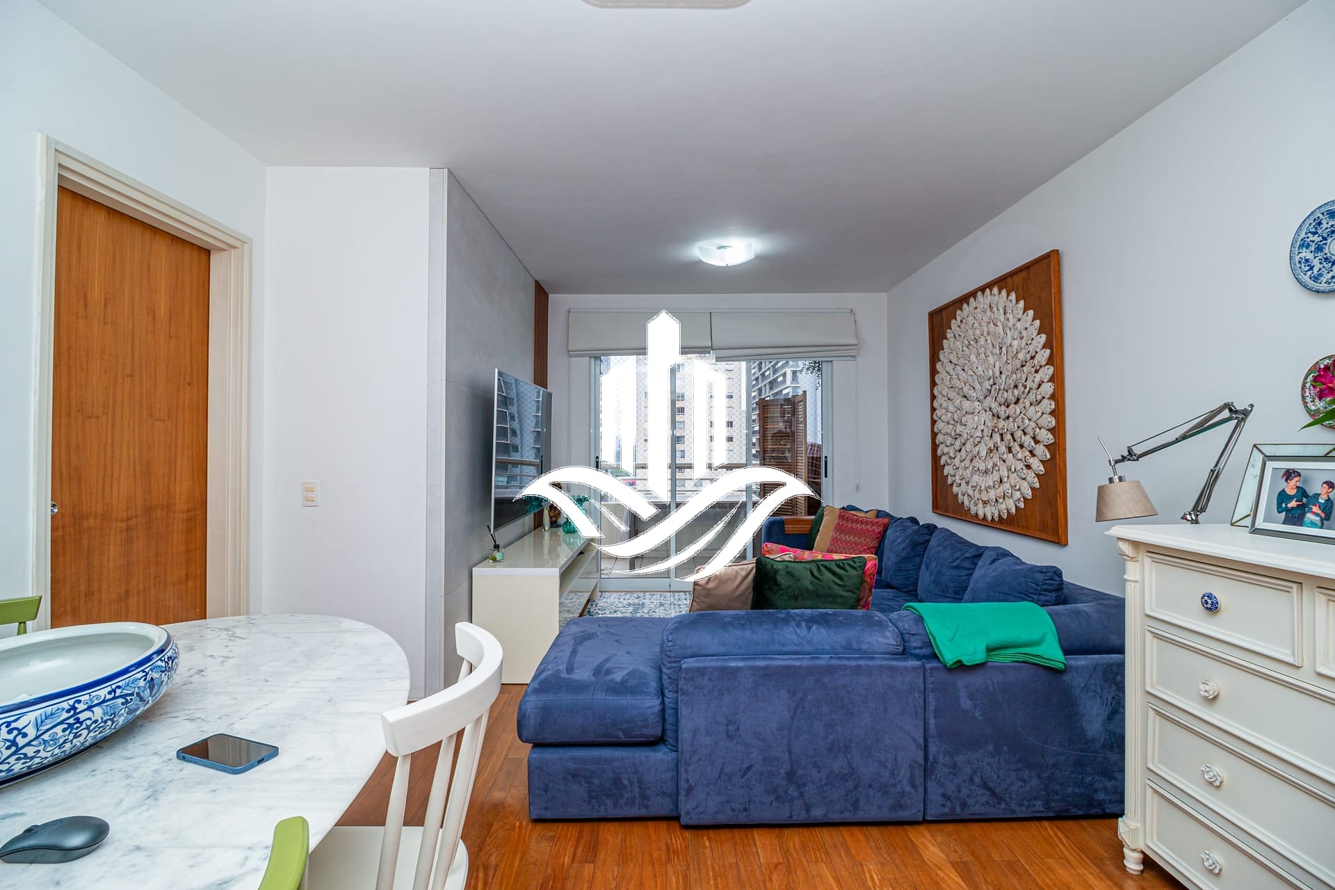 Sala ampla com varanda, integrada à iluminação natural