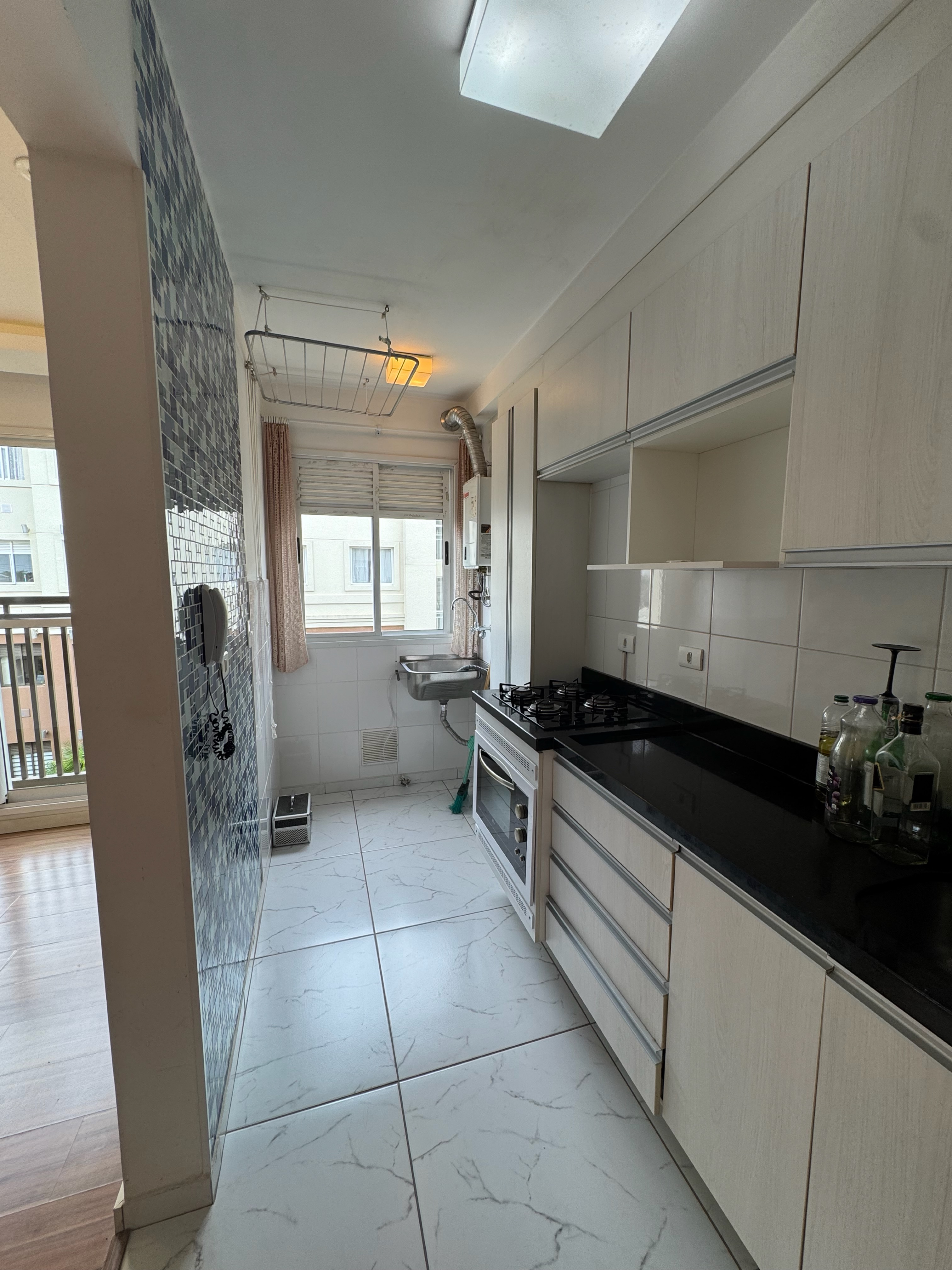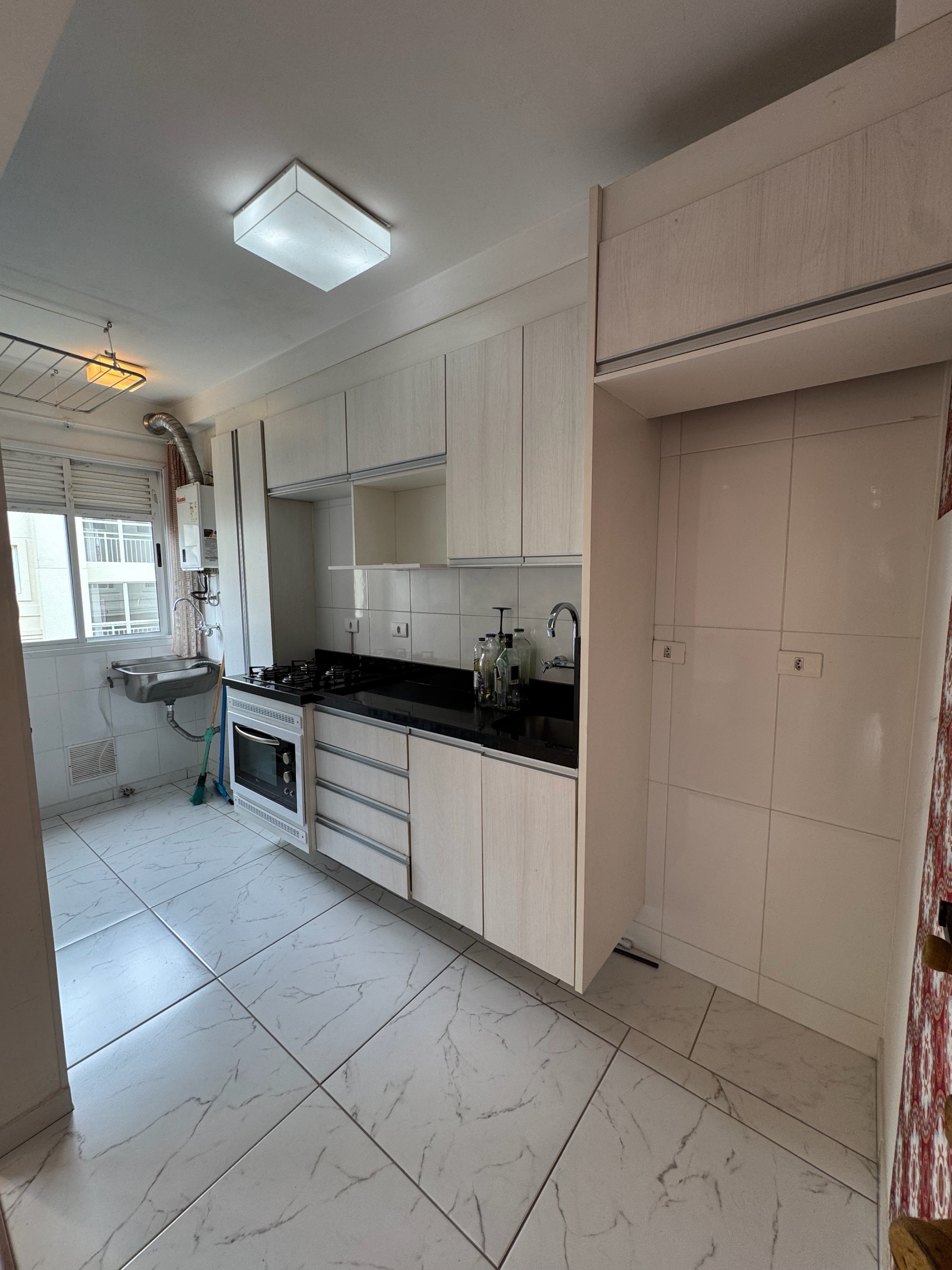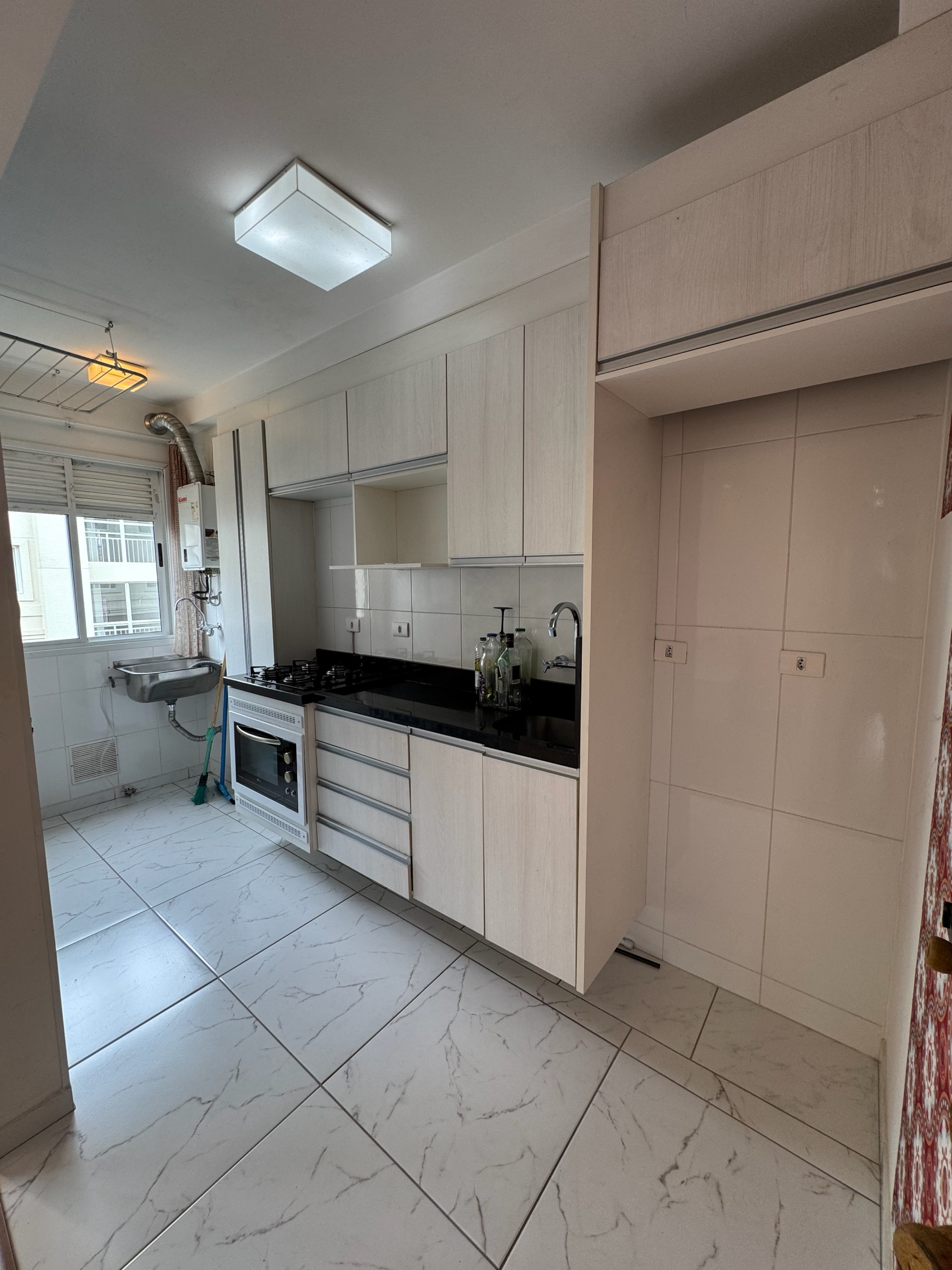 - Cozinha com armários planejados e área de serviço integrada;