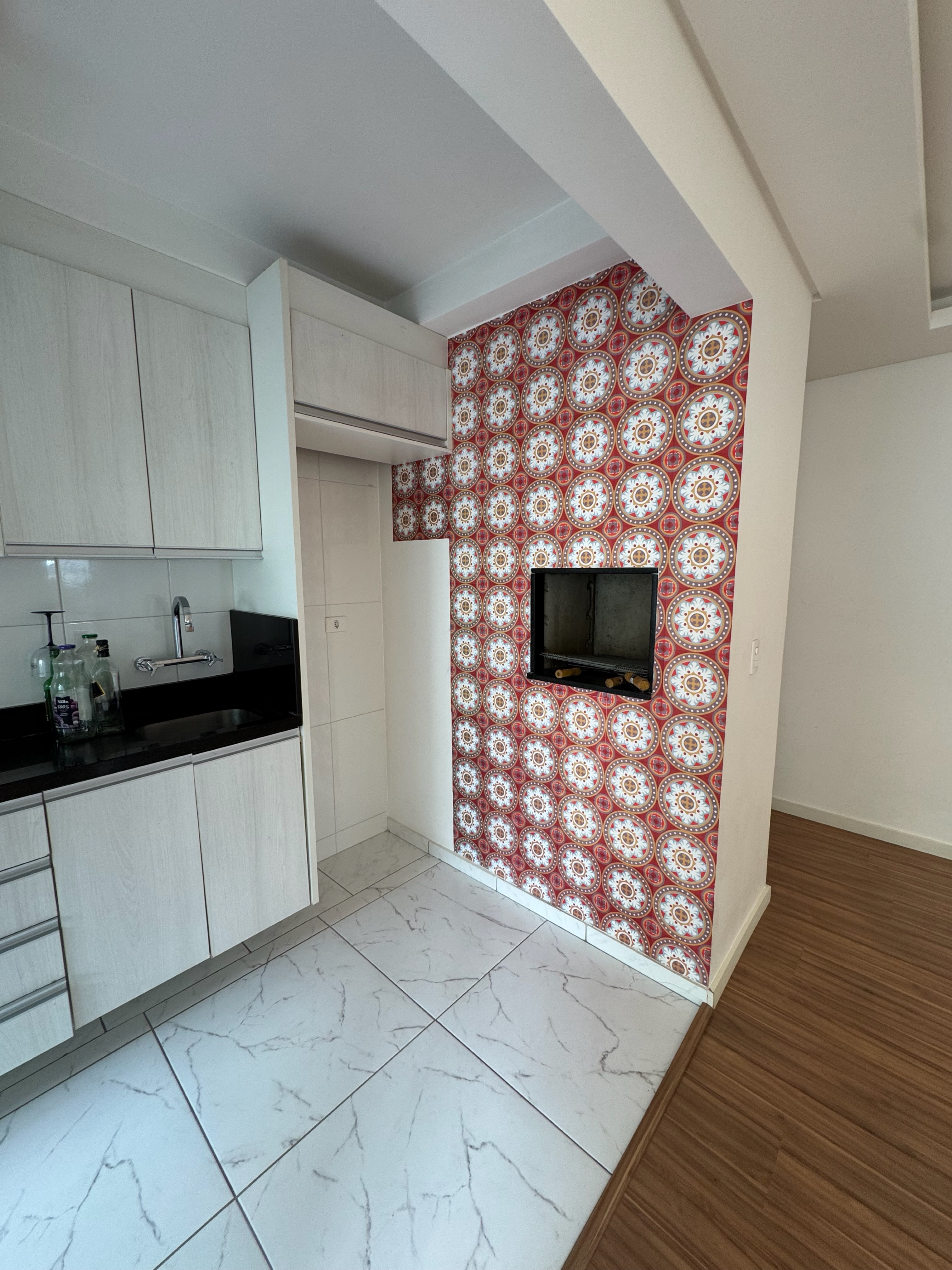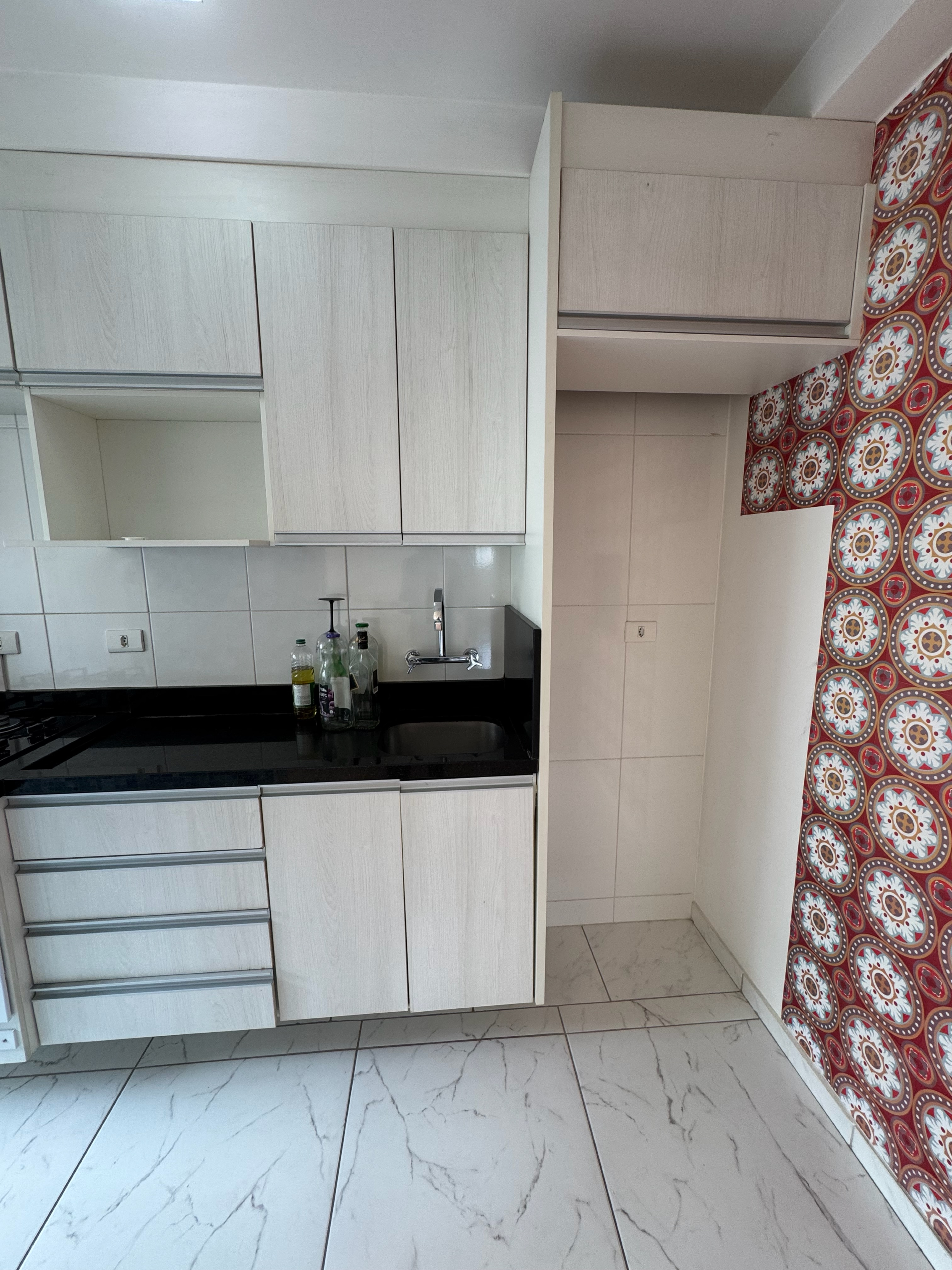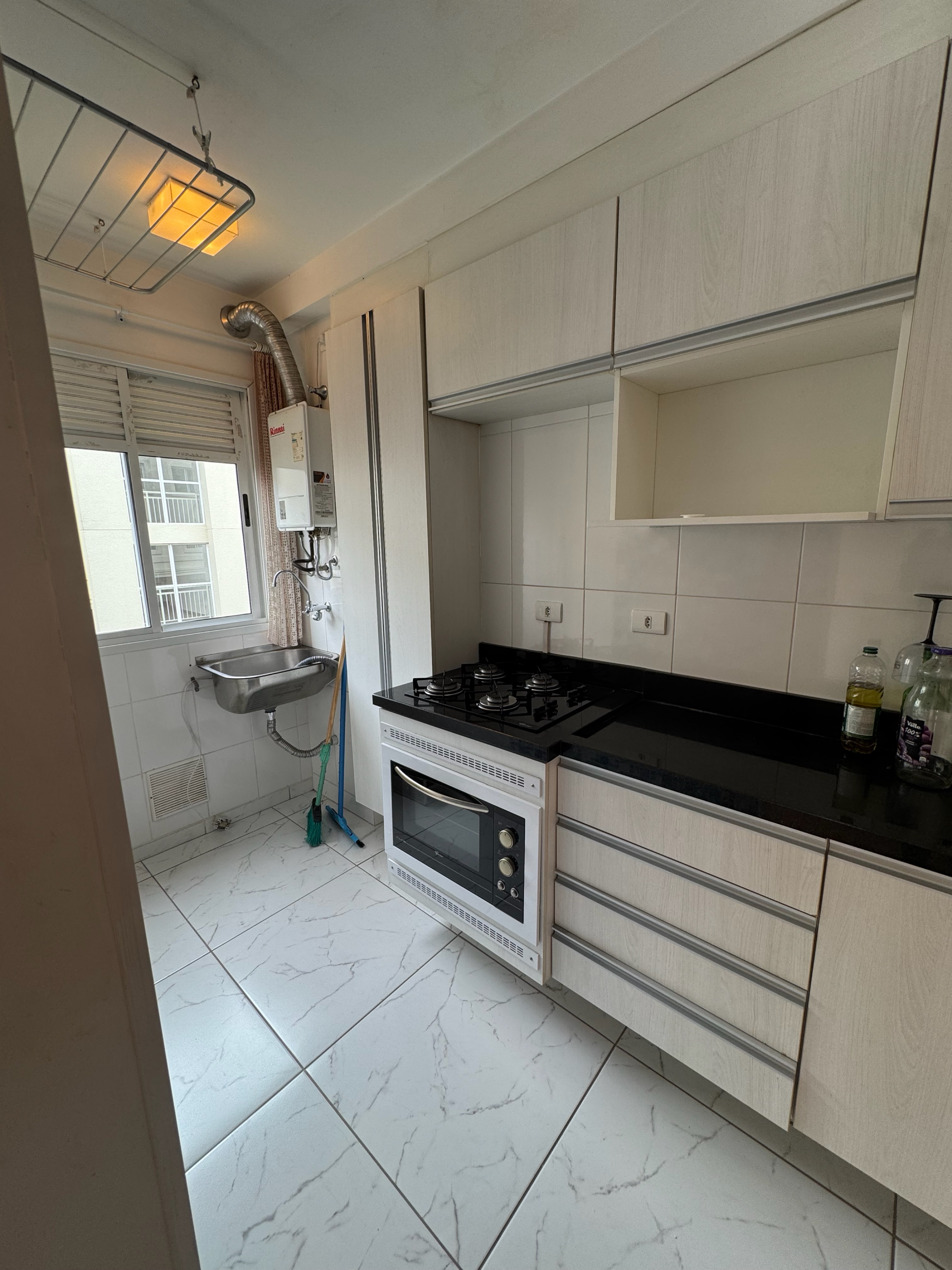 - Cozinha com armários planejados e área de serviço integrada;