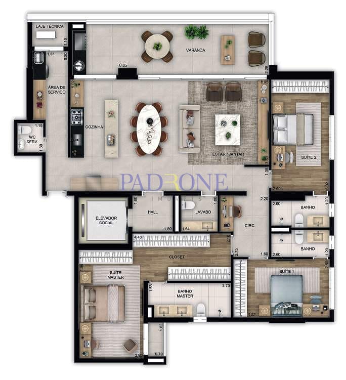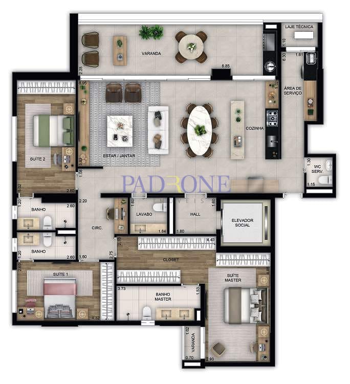 Apartamento à Venda com 3 quartos, 170 m² por R$ 1.695.748