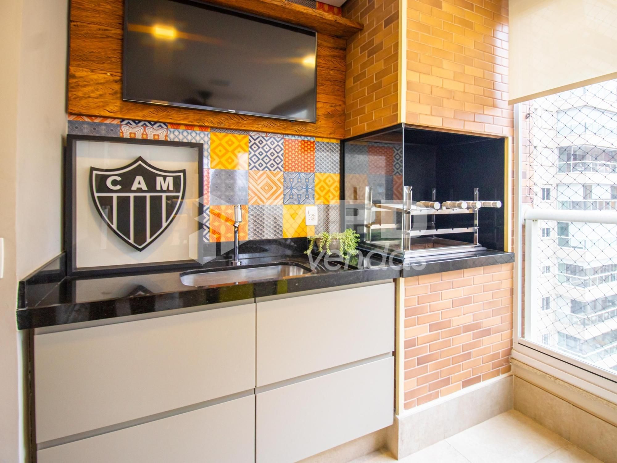Integrada à cozinha e varanda gourmet com churrasqueira,