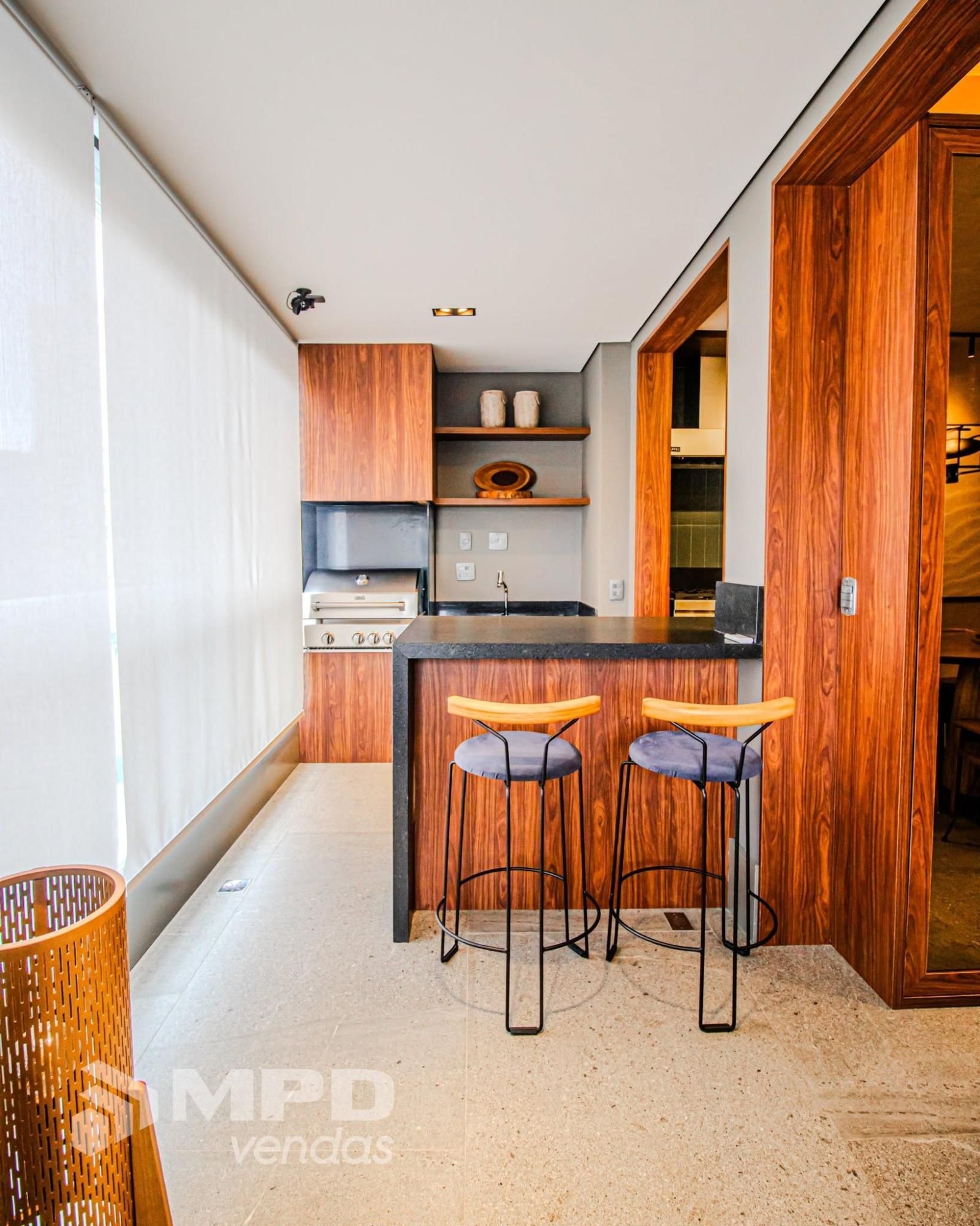 Integrada à cozinha e varanda gourmet com churrasqueira,