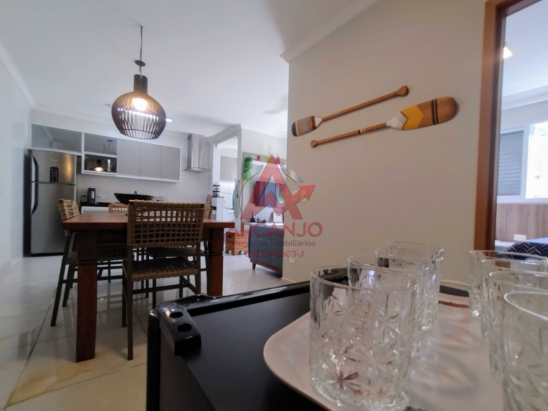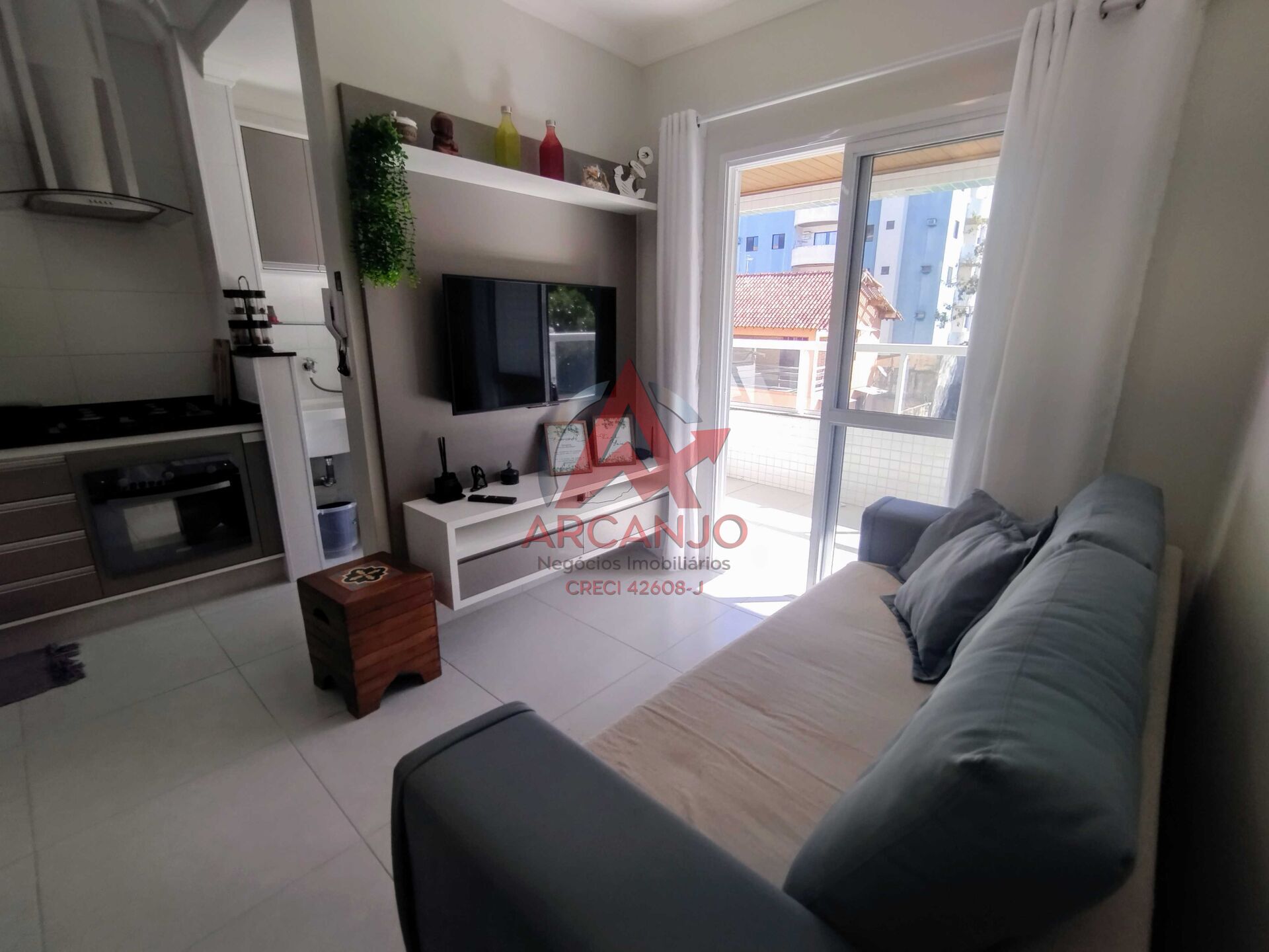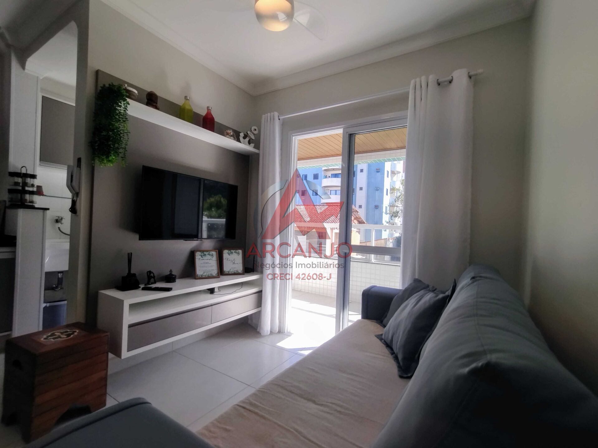 Este apartamento localizado na Praia das Toninhas, possui 02 quartos sendo 01 suíte, 01 banheiro social, sala de TV e jantar, cozinha com armários planejados, área de serviço, varanda gourmet com churrasqueira, além de vaga de garagem.