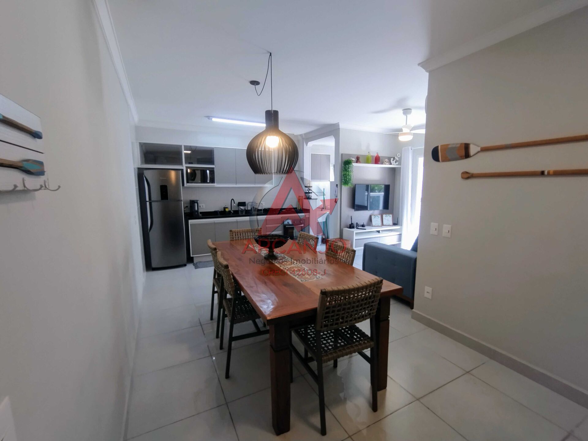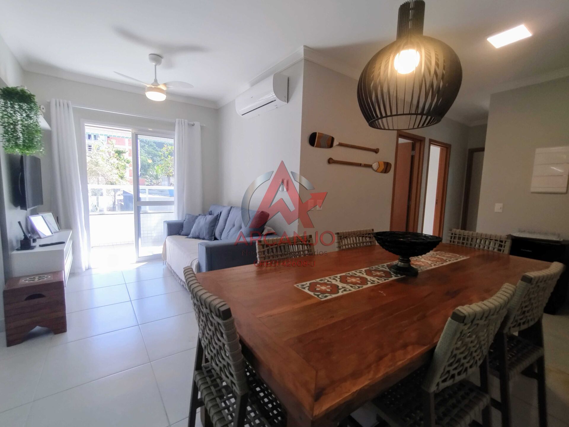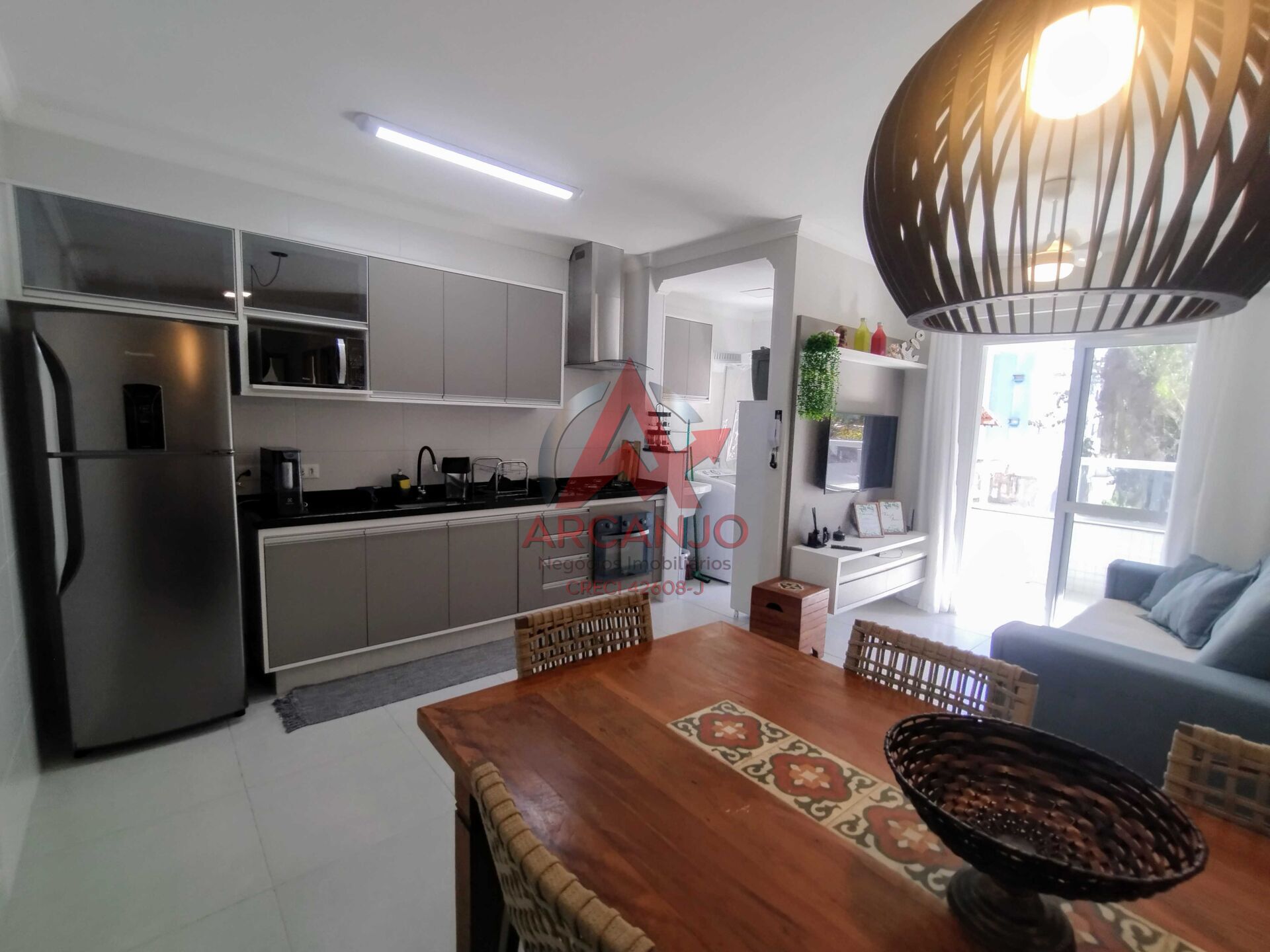 Este apartamento localizado na Praia das Toninhas, possui 02 quartos sendo 01 suíte, 01 banheiro social, sala de TV e jantar, cozinha com armários planejados, área de serviço, varanda gourmet com churrasqueira, além de vaga de garagem.