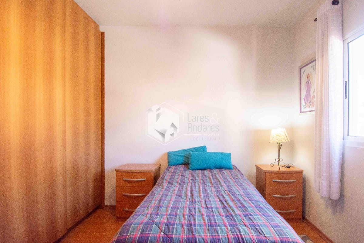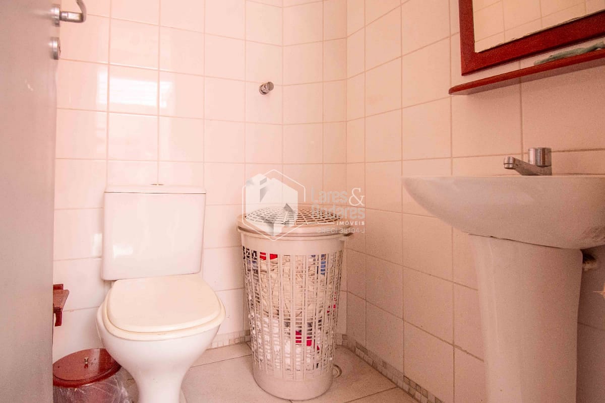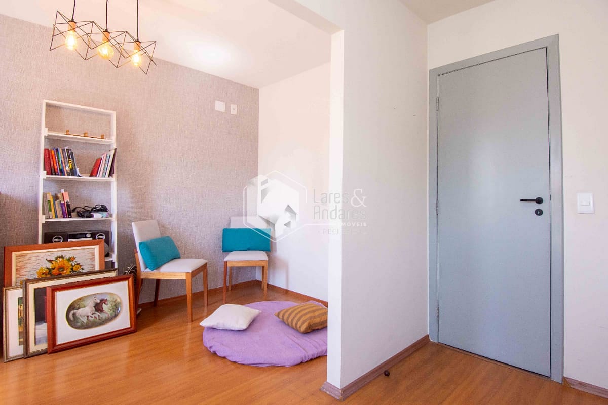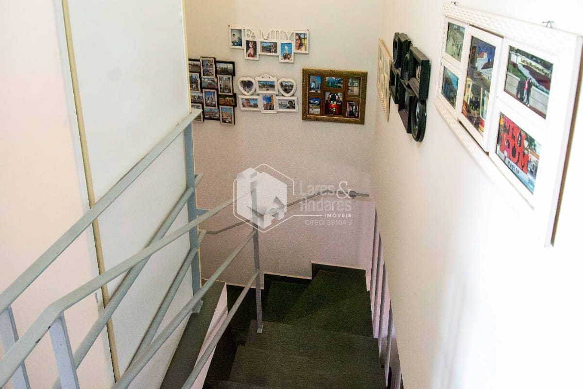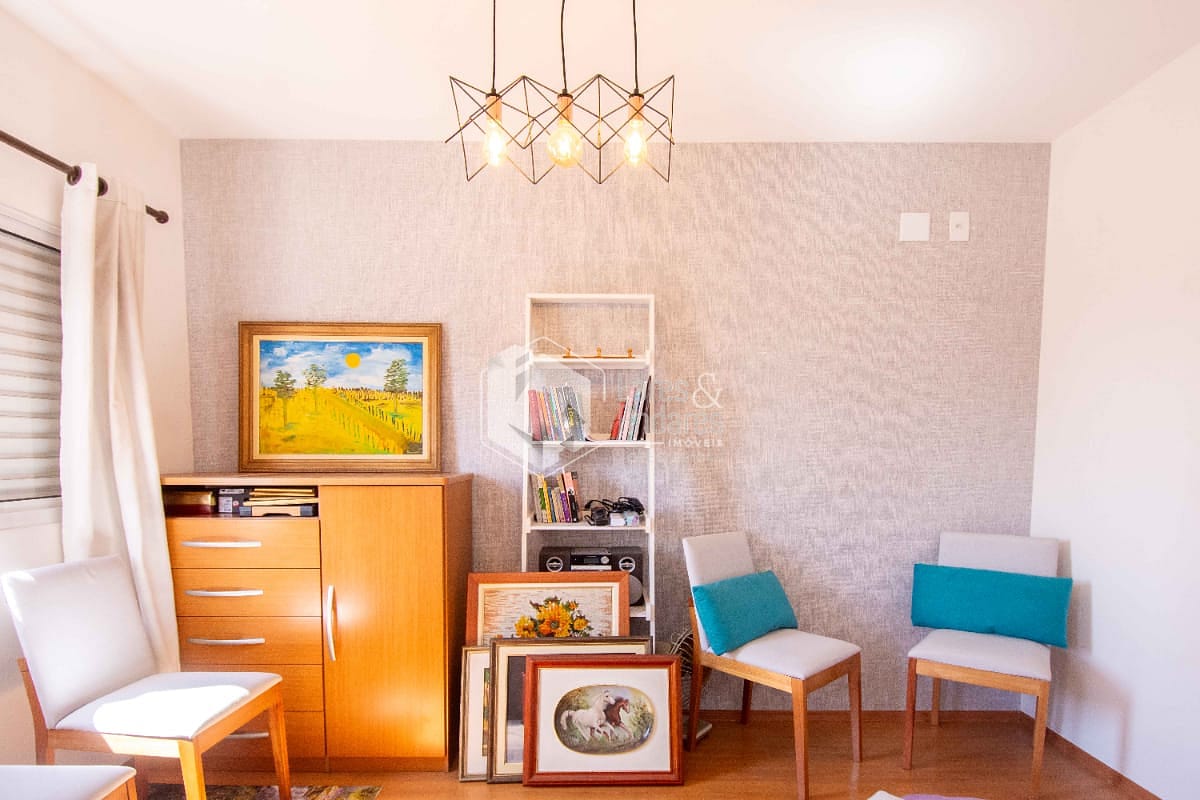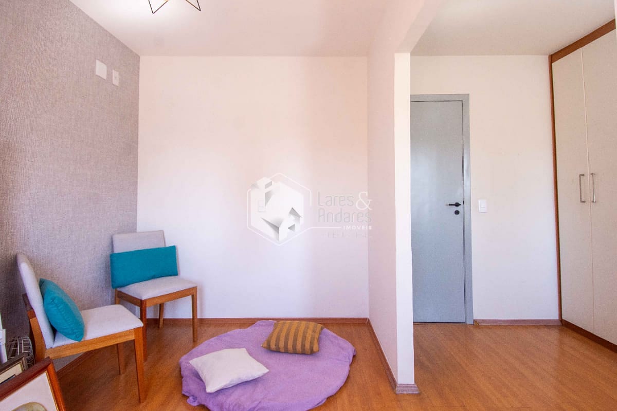 Andar superior com dois dormitórios sendo uma suite com sacada e um banheiro;