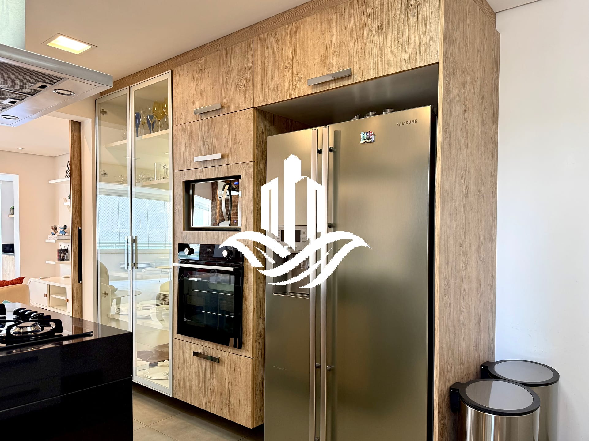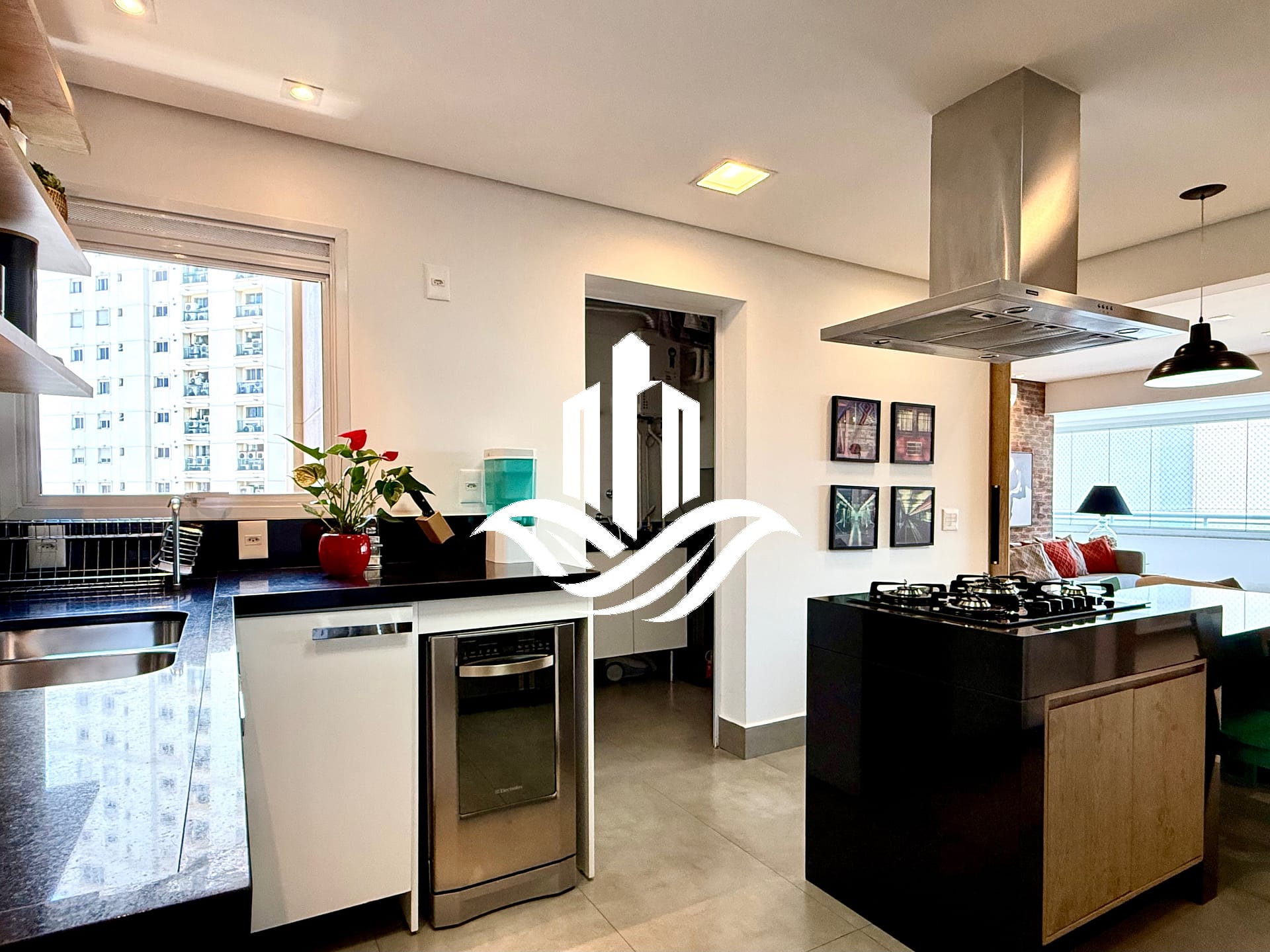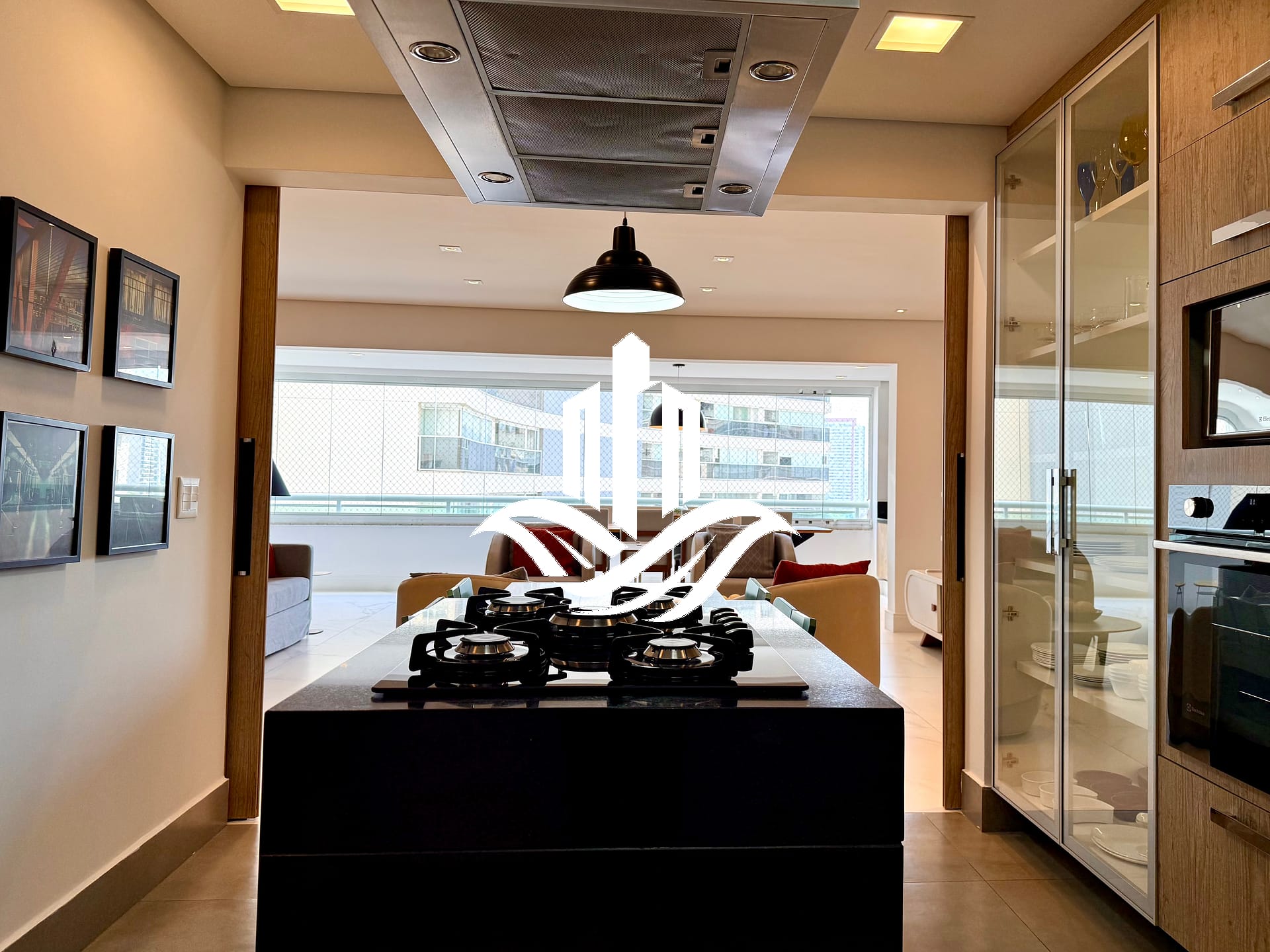 Ambientes integrados, varanda com ótimo fechamento, cozinha moderna e mobiliada, armários planejados.