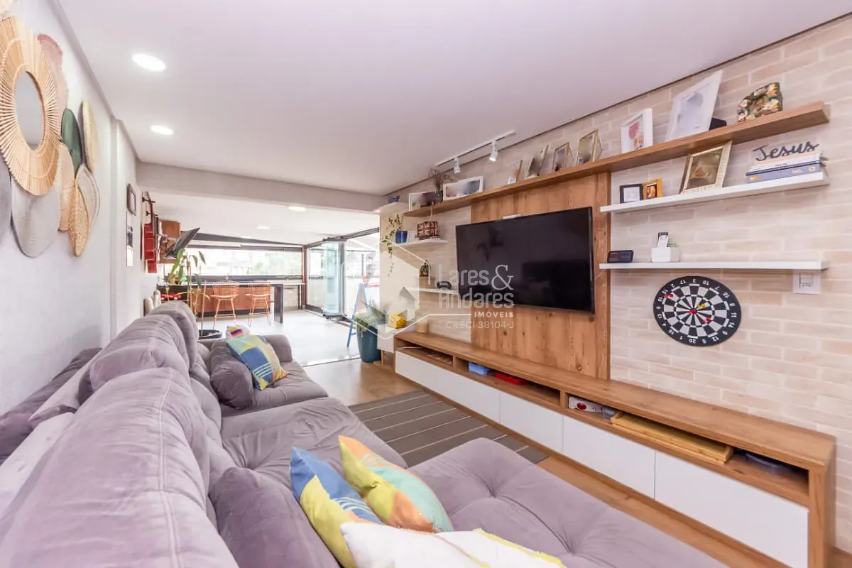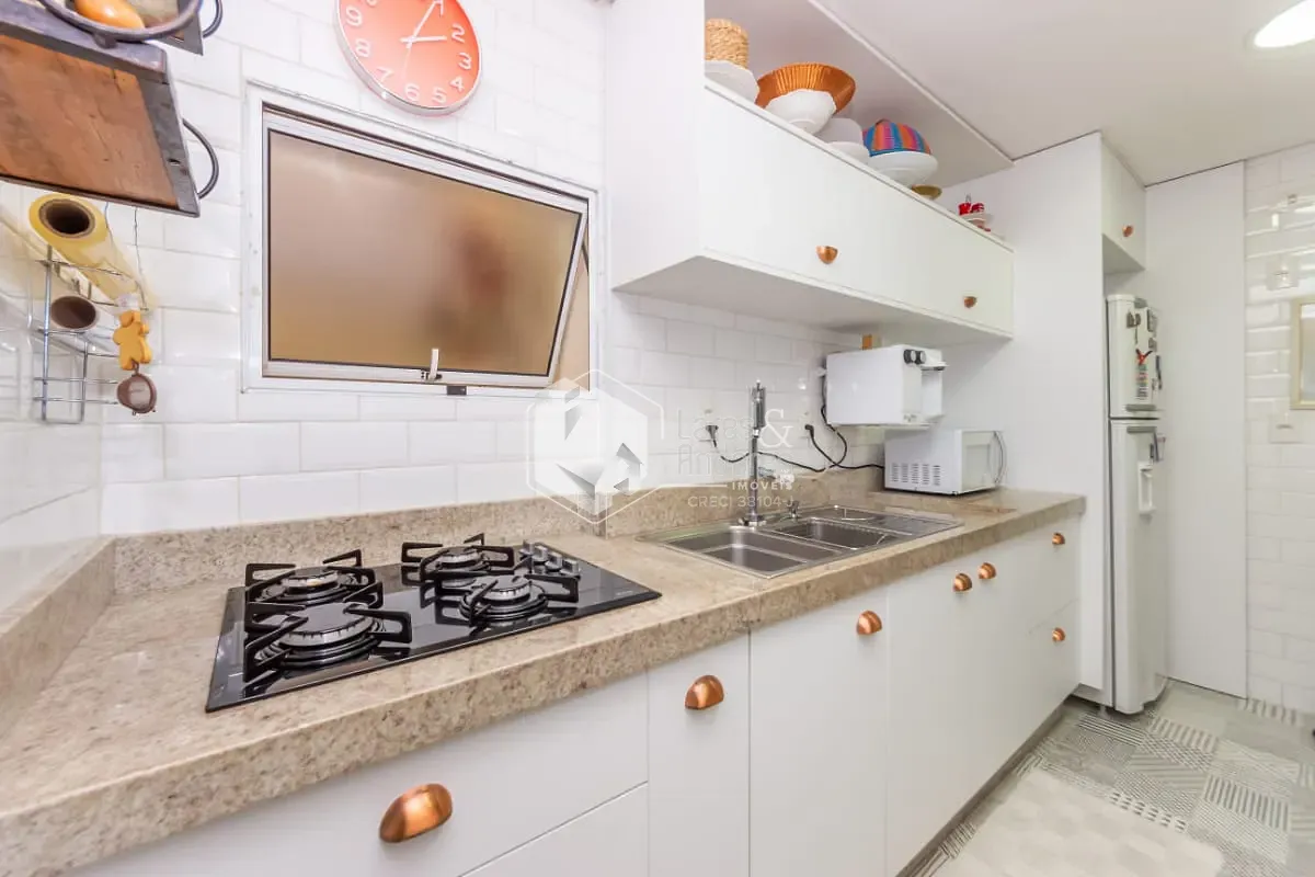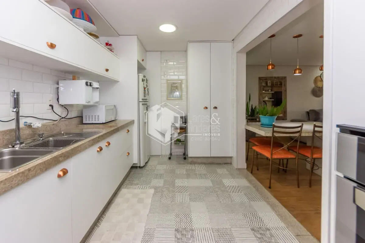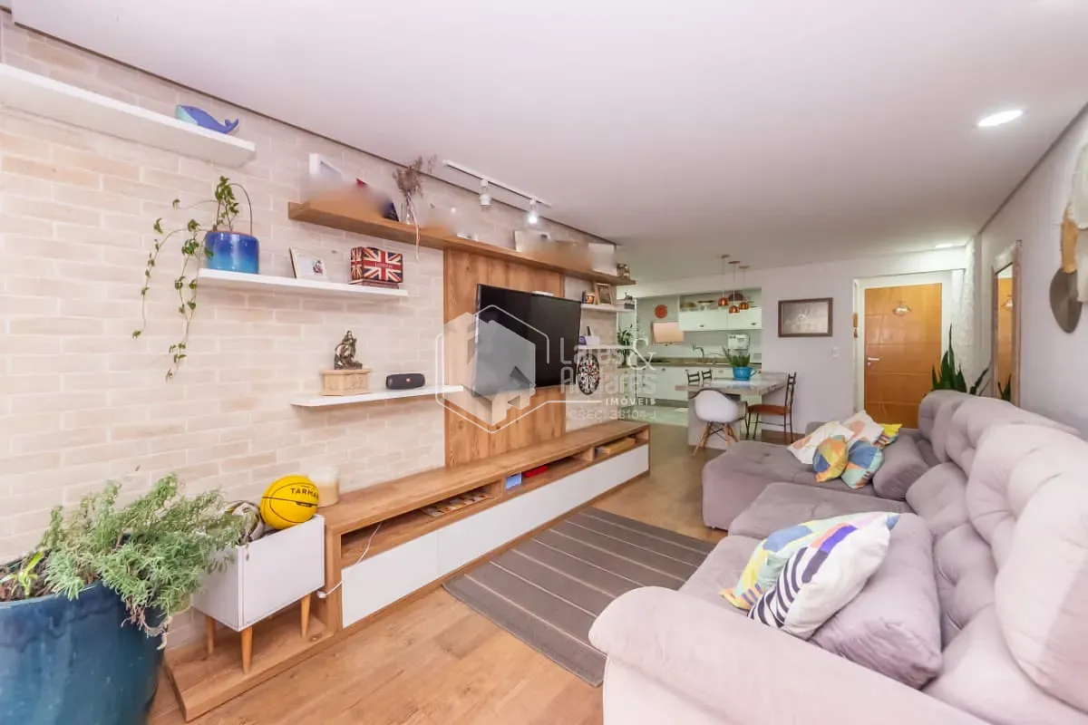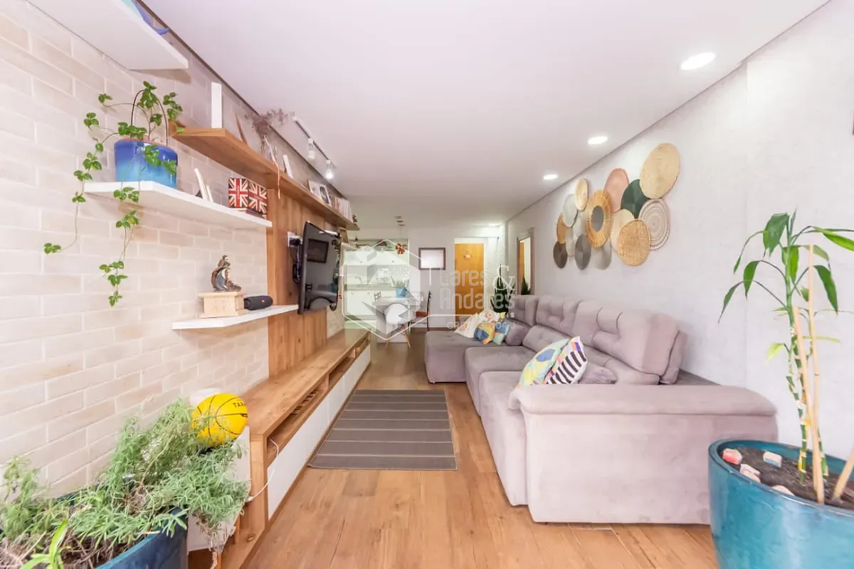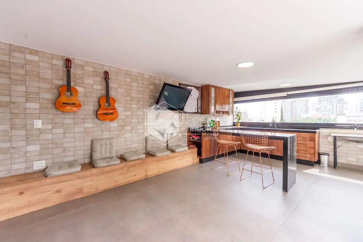 O living em dois ambientes integra-se harmoniosamente a um amplo terraço envidraçado, que se abre para a charmosa área externa, ideal para desfrutar momentos de relaxamento, reunir amigos ou simplesmente apreciar o ar livre no coração da cidade. A planta é moderna e versátil, com três dormitórios, sendo uma suíte. O terceiro quarto atualmente funciona como closet e home office, mas pode ser facilmente revertido, conforme a necessidade. A cozinha planejada, de linhas contemporâneas, conecta-se à lavanderia e conta com dependências completas de serviço, mantendo a praticidade e o conforto do dia a dia. O apartamento conta ainda com um segundo terraço coberto multifuncional, que funciona hoje como espaço fitness e outro home office.