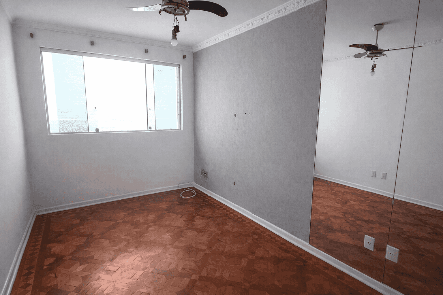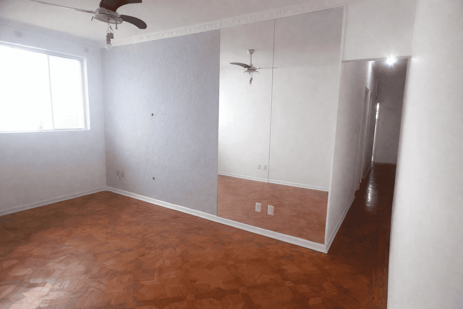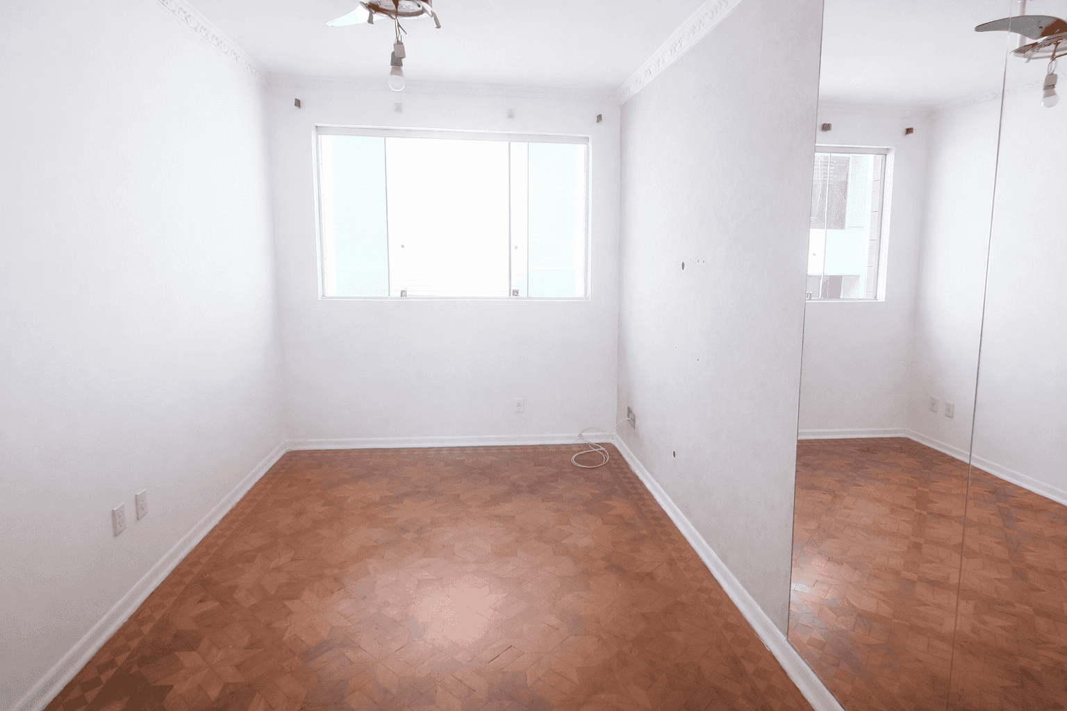O grande espelho amplia o espaço e traz uma atmosfera elegante e acolhedora.