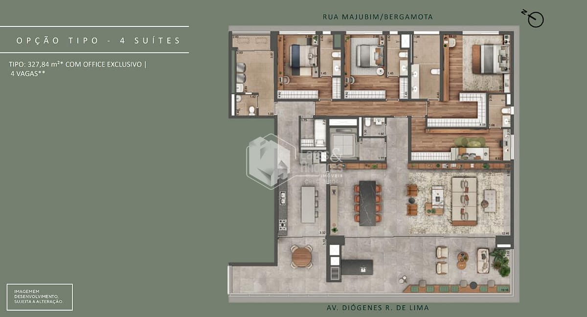 Com 4 vagas de garagem, o imóvel é ideal para quem valoriza espaço e conforto. O empreendimento, que será entregue em 2026, está próximo a diversas facilidades e promete ser um lar perfeito para quem busca qualidade de vida.