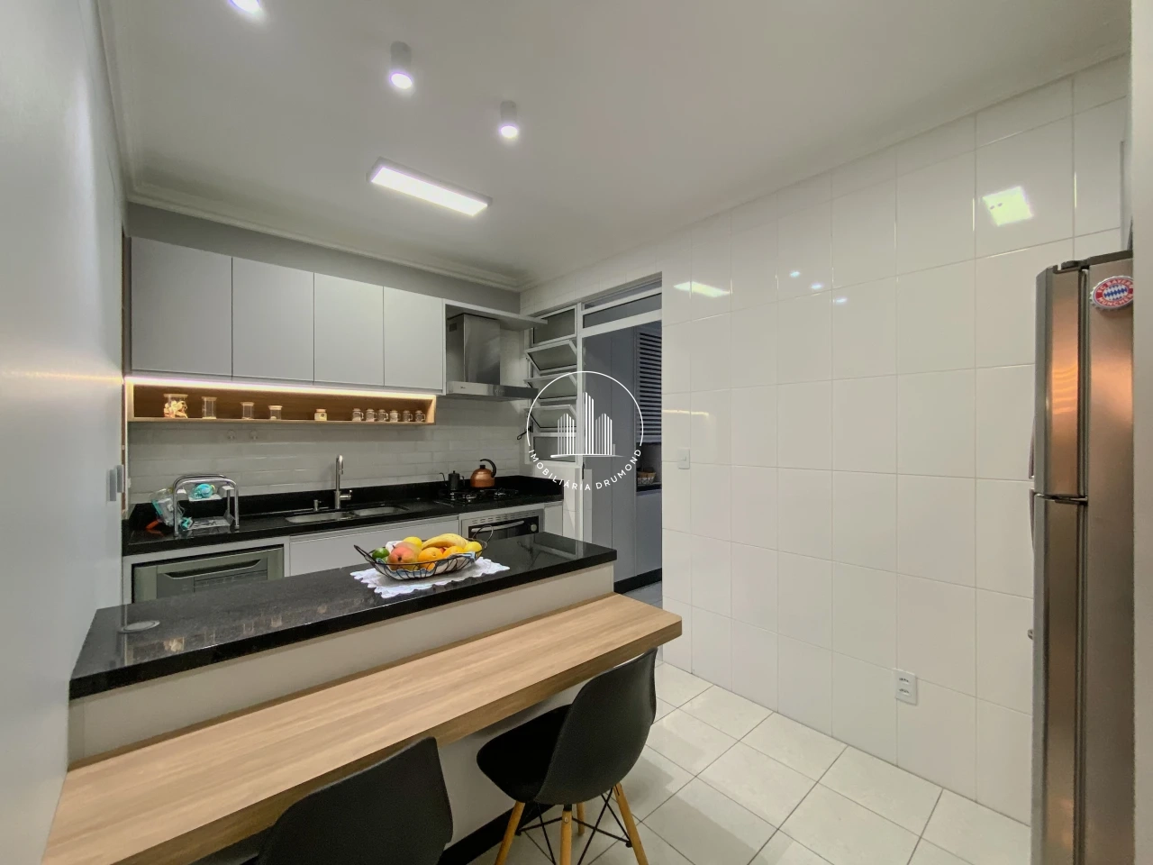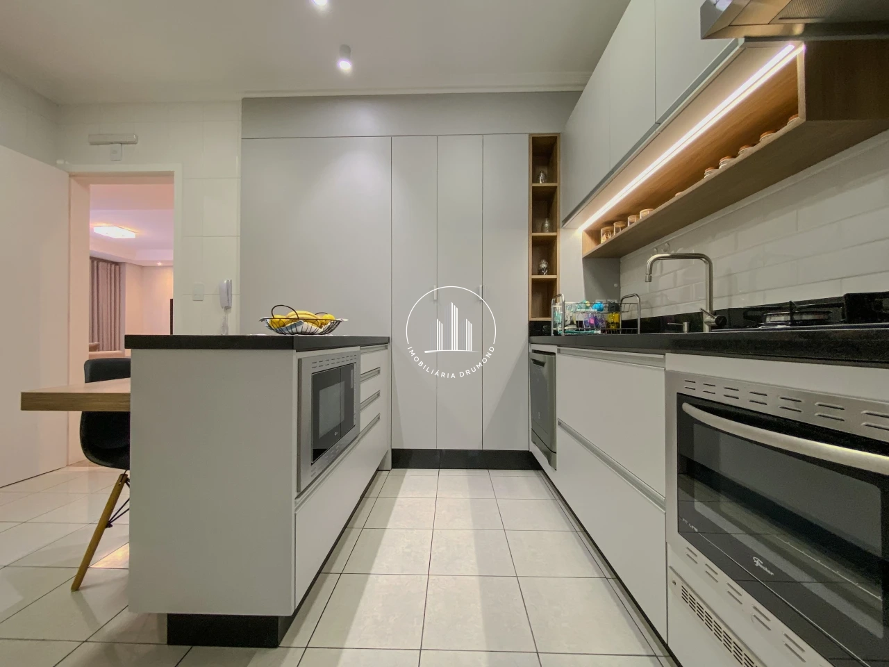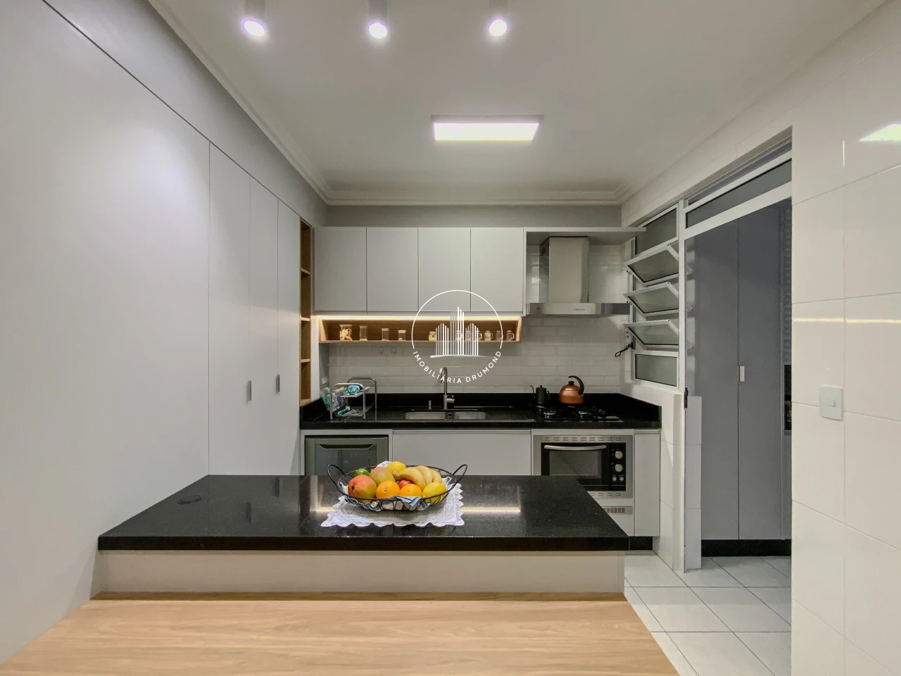 • Projeto arquitetônico na sala e cozinha