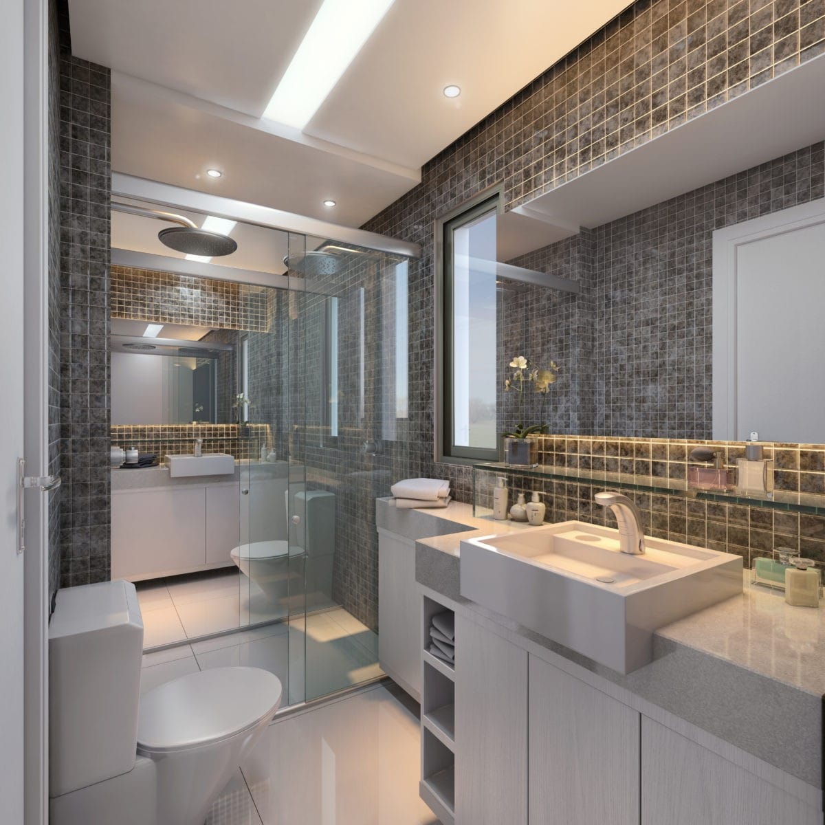 3 banheiros luxuosamente projetados para o seu conforto e conveniência