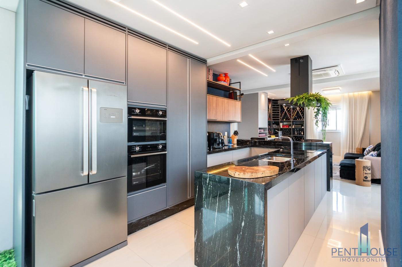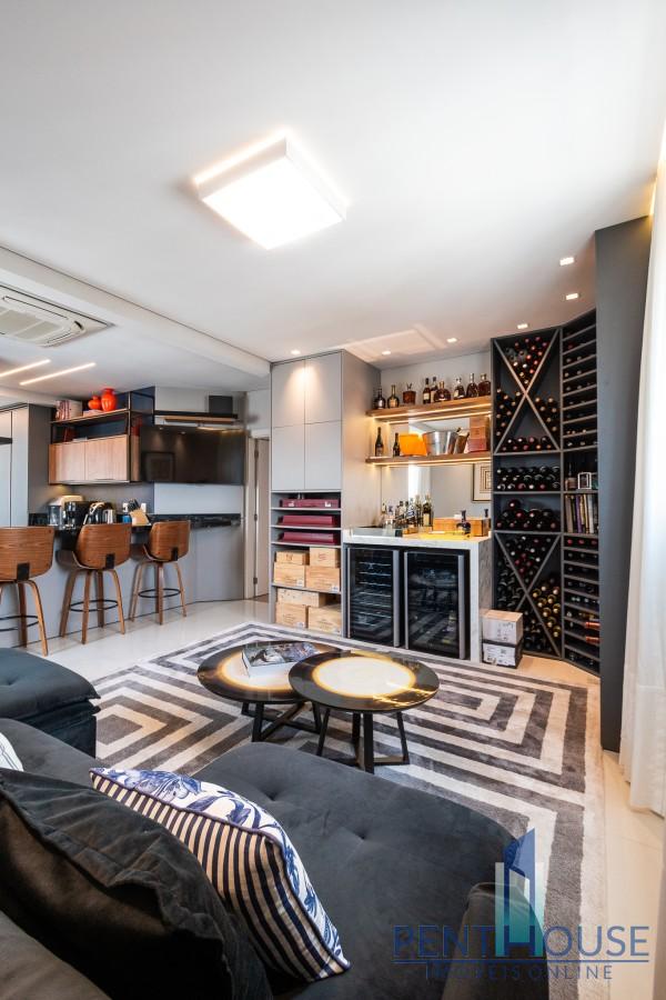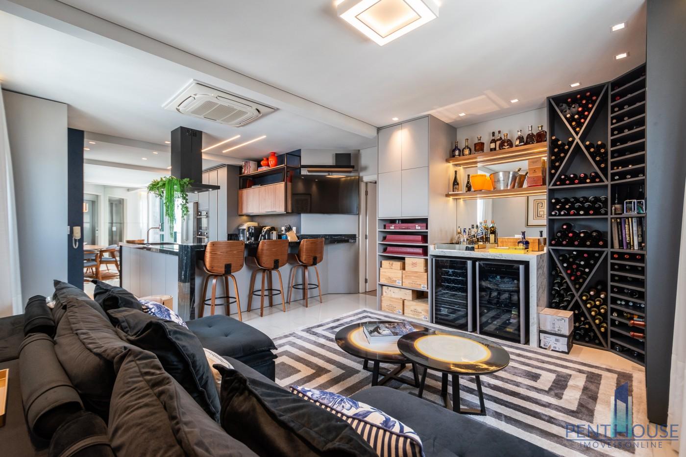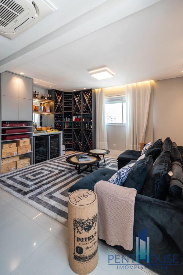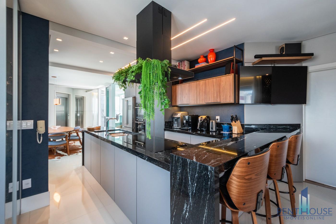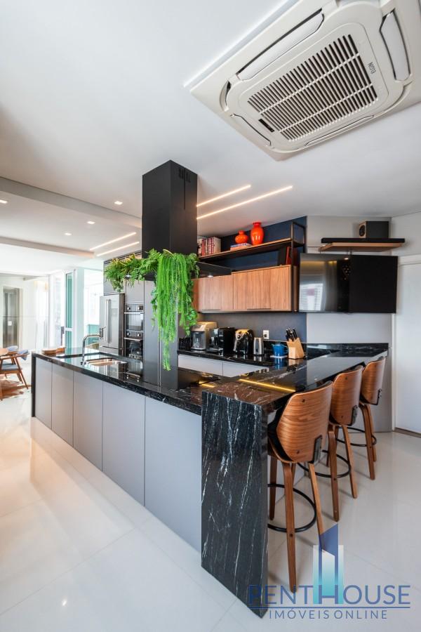 Com 242 metros quadrados de área privativa, a planta é distribuída de forma inteligente em dois pavimentos. No primeiro, três suítes espaçosas garantem privacidade e conforto. No segundo, mais uma suíte e um terraço com vista mar compõem o cenário perfeito para momentos de lazer e contemplação. A integração da sala de estar e jantar com a cozinha planejada amplia o ambiente e valoriza a iluminação natural. O espaço gourmet com churrasqueira a carvão e a piscina privativa no terraço tornam o ambiente ideal para receber bem. O imóvel já está totalmente mobiliado, decorado e equipado, pronto para morar. São três vagas de garagem individuais, reforçando a exclusividade da unidade.