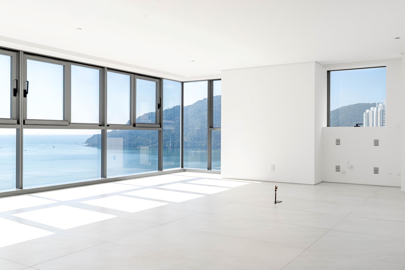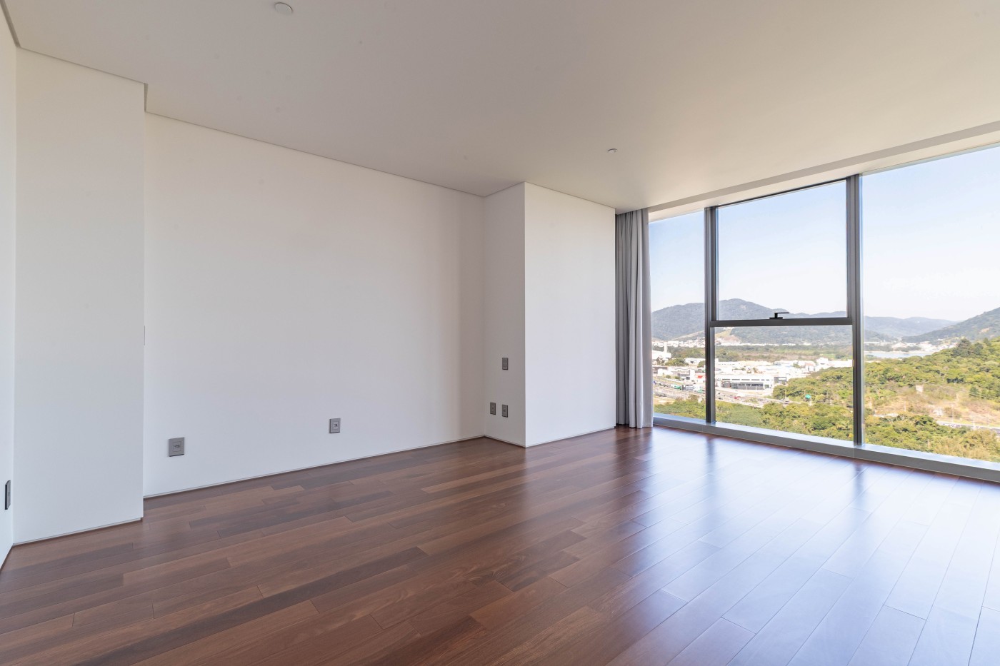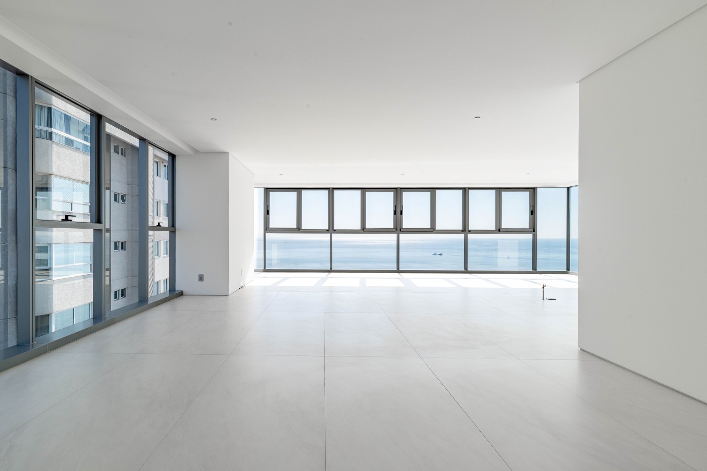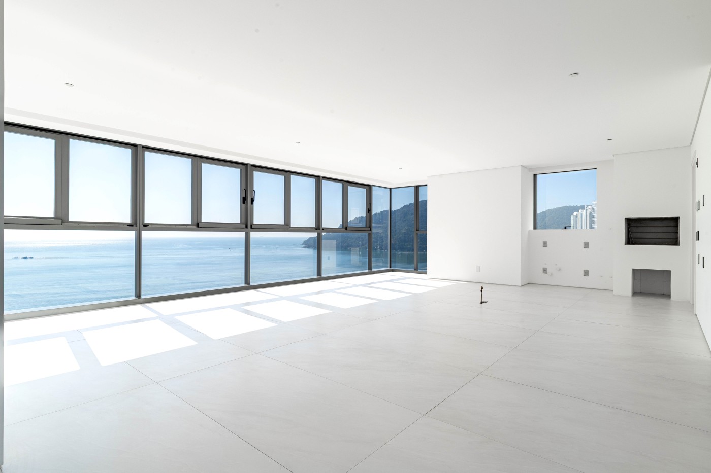 marca alemã Schüco piso porcelanato 1,2m x 1,2m na área social piso de madeira na área íntima