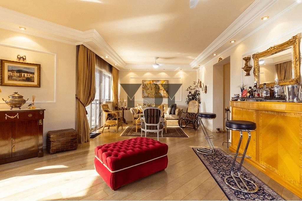 A propriedade está em excelente estado aceitando permuta este apartamento oferece um luxuoso espaço de vida de 192 metros quadrados distribuídos em 10 cômodos bem projetados incluindo 3 dormitórios com suítes confortáveis home theater armários embutidos lareira acolhedora além de lavabo.