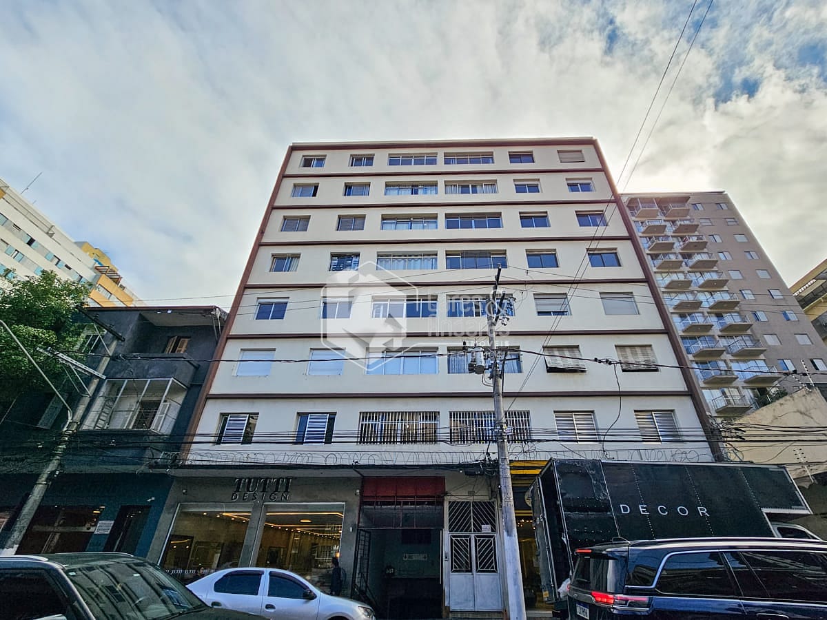 Condomínio construído em 1971, tem térreo com lojas e um estacionamento pago.