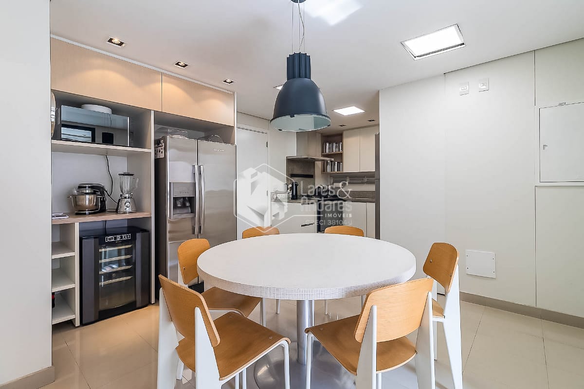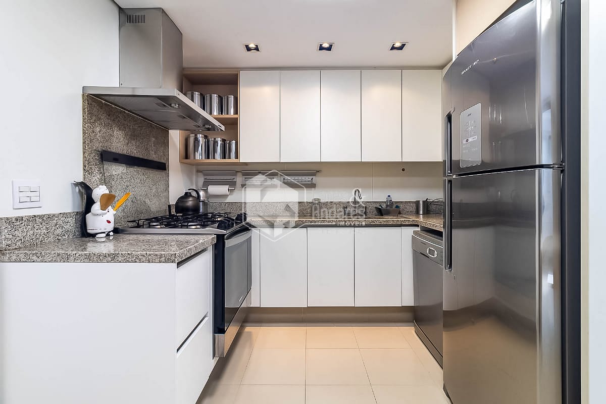A cozinha e a copa contam com armários da Kitchens e bancadas generosas. Portas com reconhecimento facial, hall privativo em mármore e acabamentos discretos reforçam o cuidado com cada escolha. Um apartamento pensado para famílias, a poucos passos das boas escolas do bairro.