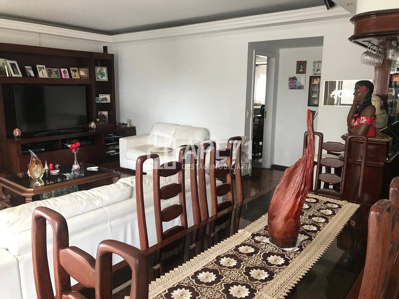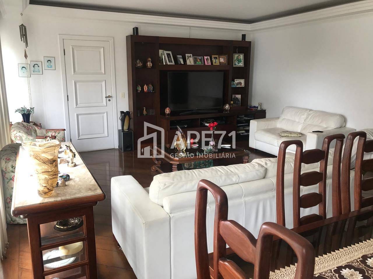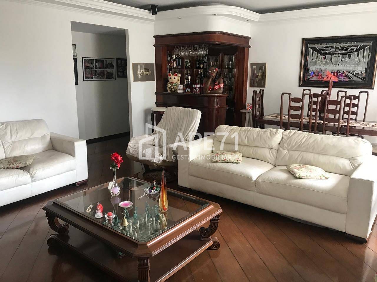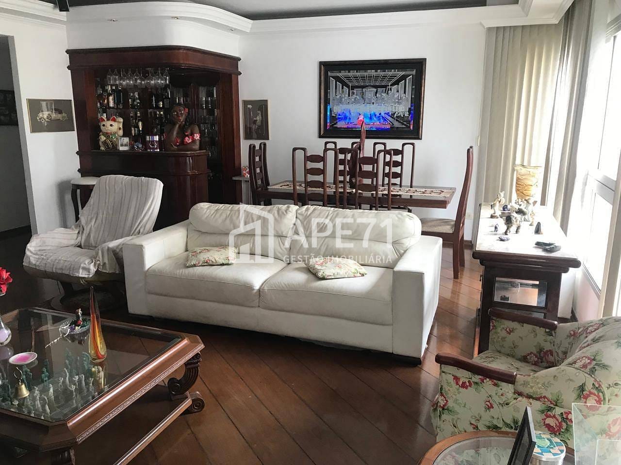 Amplo apartamento com sala com dois ambientes, piso em tabuas de madeira, 4 dormitórios com armário embutido e piso de madeira, sendo 1 suíte com hidromassagem, banheiros social e lavabo, cozinha planejada, área de serviço com armários, quarto e Wc de empregada. 2 vagas escrituradas e deposito.