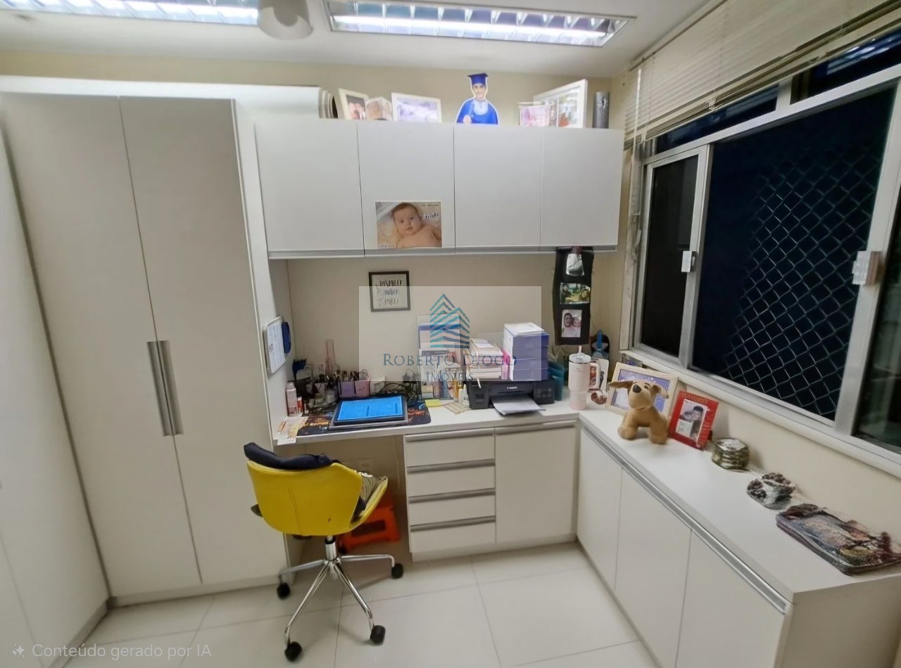 Com 1 suíte + 3 quartos, sendo um deles modulado e perfeito para ser utilizado como escritório, sala ampla com 2 ambientes, 3 banheiros (sendo 2 com blindex), varanda grande, 2 vagas de garagem e água incluída no condomínio (com valor variável).