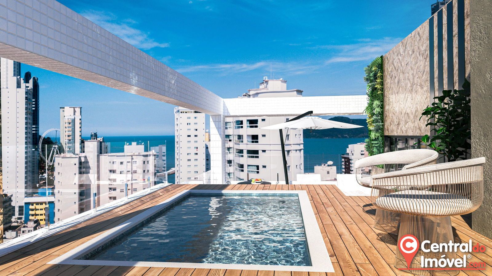 O empreendimento conta com 20 pavimentos, 02 apartamentos por andar, com opções de 03 e 04 suítes, 02 coberturas duplex, com opções de 04 e 05 suítes, 04 pavimentos de garagem, 02 elevadores, box de praia privativo, medidores individuais de água e gás, gerador de energia para elevador e áreas comuns, segurança por câmeras e pontos para carregadores de carros elétricos.