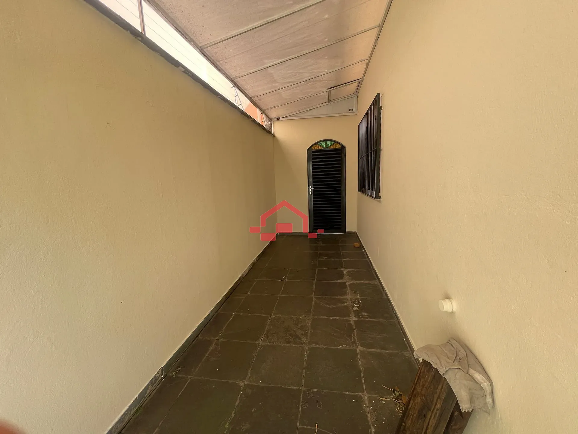 - Corredor lateral com acesso à varanda frontal, cozinha e quintal
