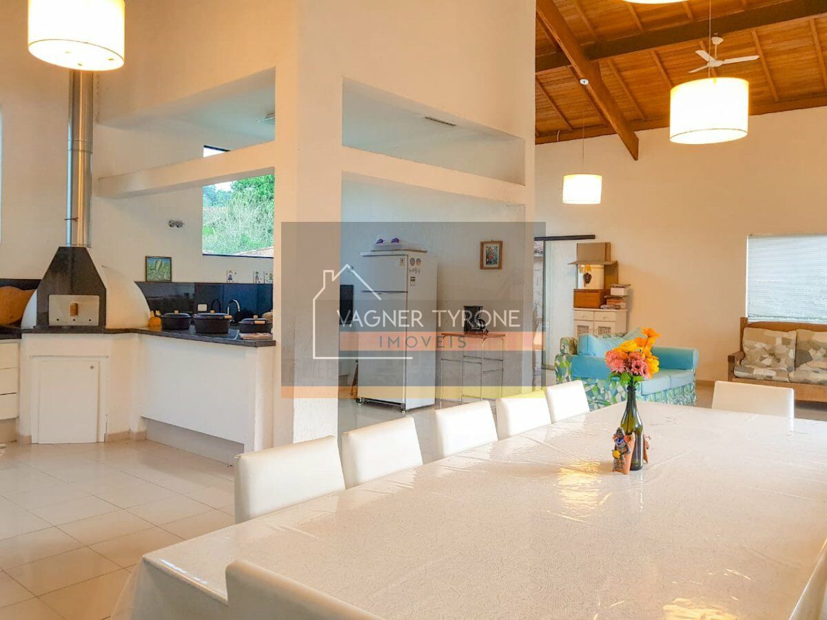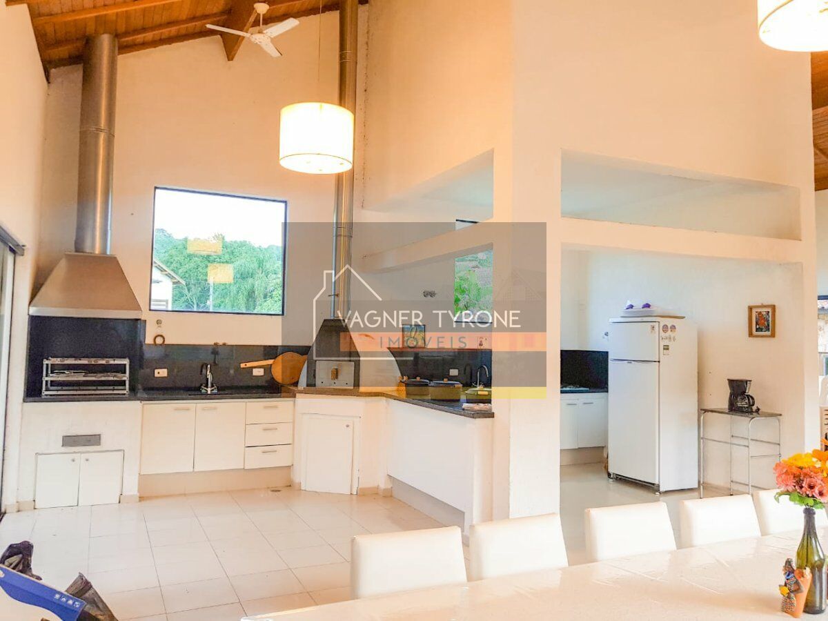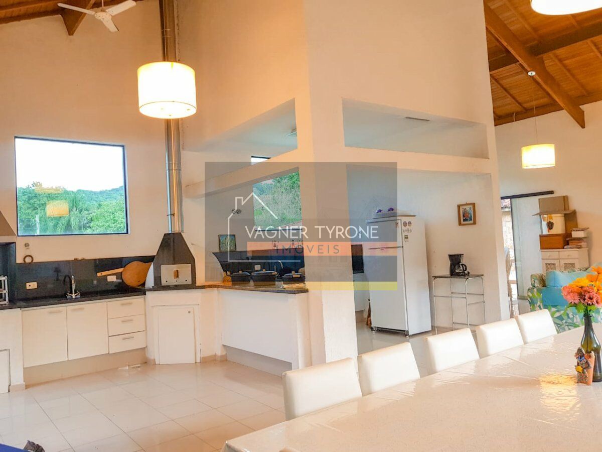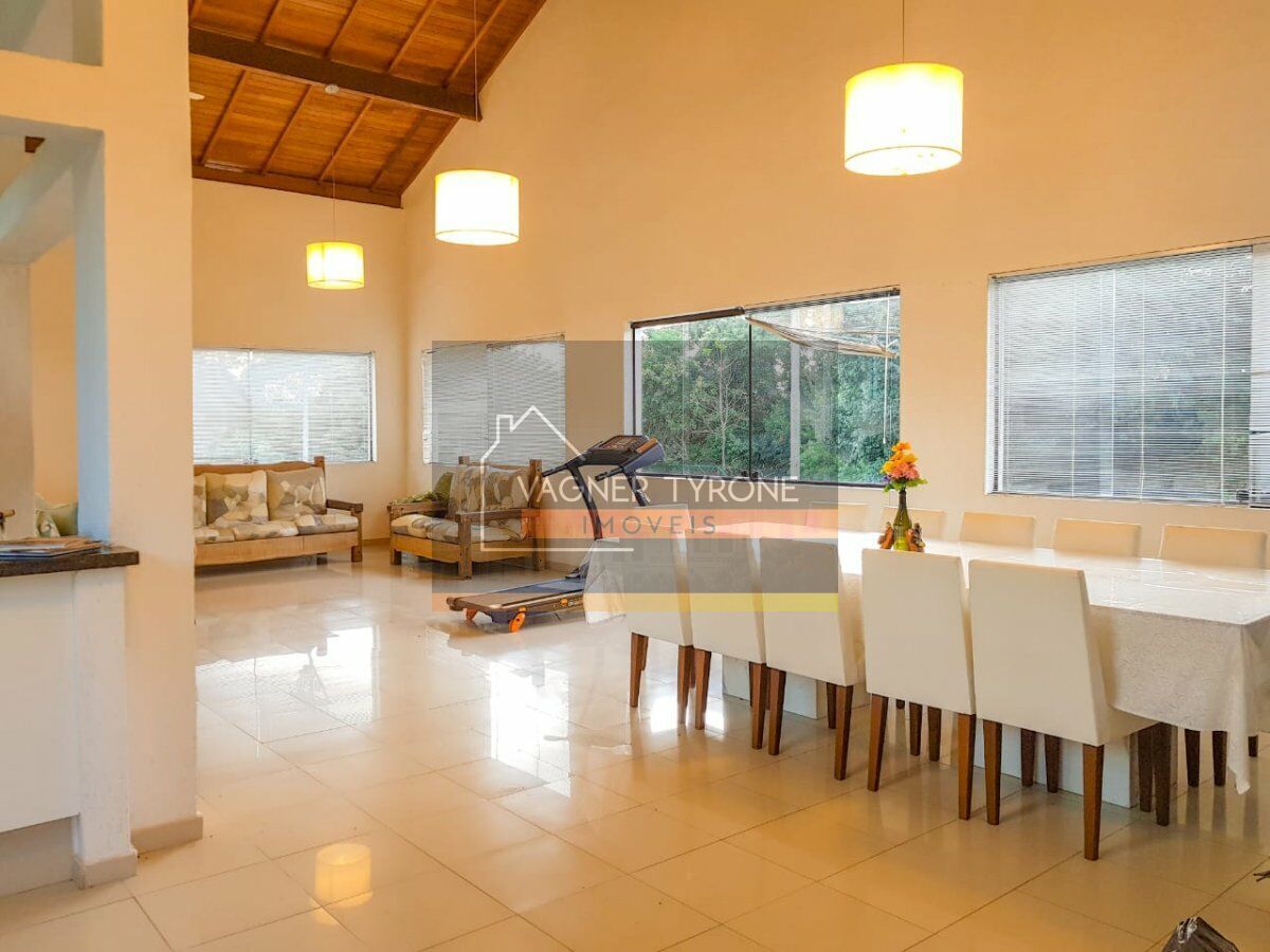 Com entrada privativa, em final de rua, no piso térreo, um amplo e acolhedor espaço gourmet, com bancada, churrasqueira e forno de pizza em granito preto, sala de almoço/jantar, descanso e lavabo, com grandes janelões, e vista para o verde exuberante. No piso inferior, uma suíte com hidro para 8 pessoas, área de descanso, vestiários e sauna, separados pela porta de vidro dupla chegamos a quadra poliesportiva e de tênis oficial com iluminação idem. Vaga para 3 autos, pomar maduro e um grande quintal, com espaço suficiente a construção de uma piscina. No entorno, a natureza privilegiada se faz presente e totalmente preservada. Possibilidade de se incluir mais 1 ou 2 suítes. Não perca tempo, o seu clube privativo a poucos Km de SP, venha conhecer e se apaixonar. Vale a pena a visita. Agende!