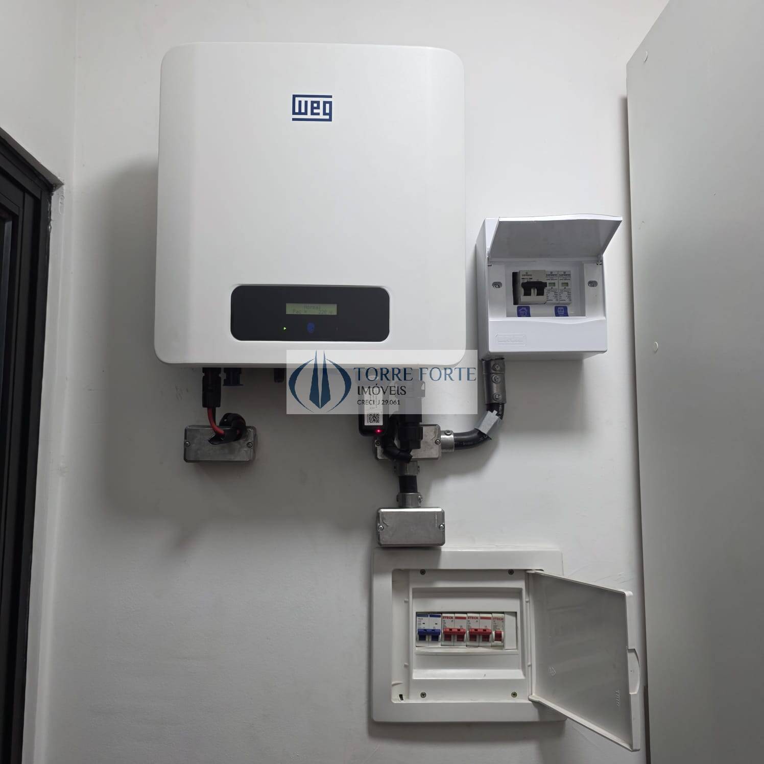 A casa possui sistema fotovoltaico instalado (energia solar) com 7 placas sendo 5 dupla-face de 650w e 2 face única de 550w.