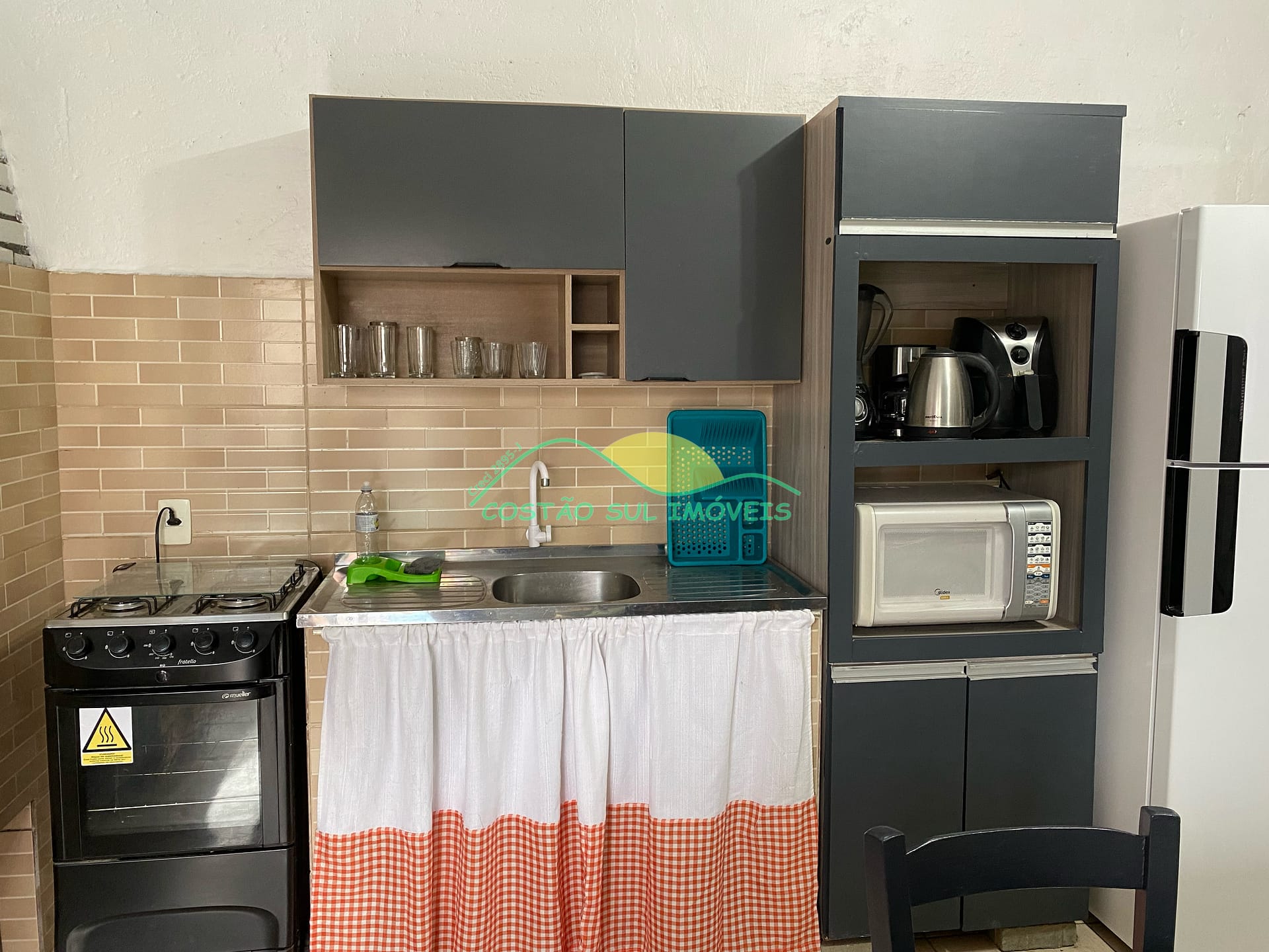 * Sala e cozinha integradas em conceito aberto, mobiliadas e equipadas com churrasqueira e todos os eletrodomésticos para sua comodidade.