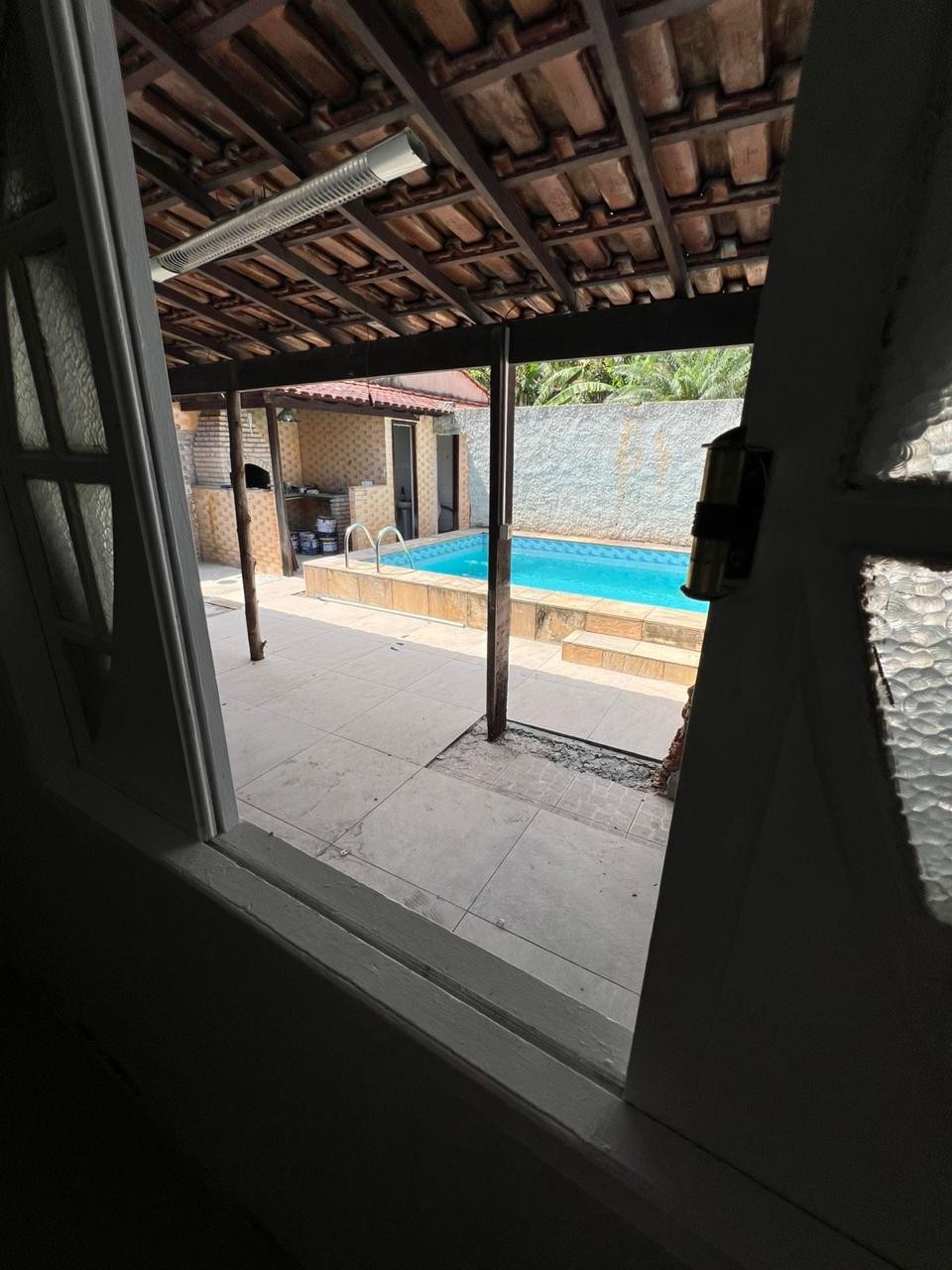 Área gourmet com churrasqueira & chuveirão
