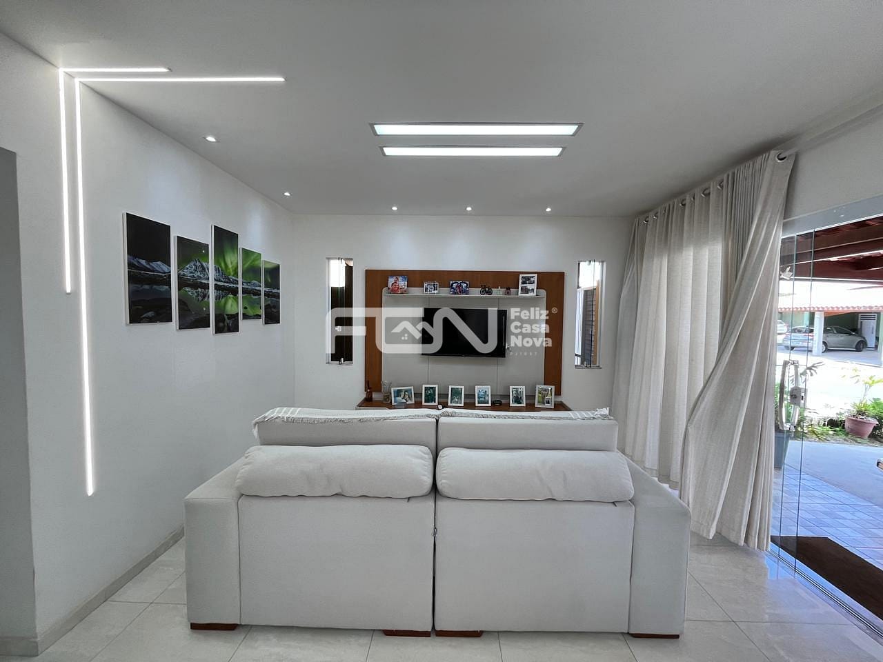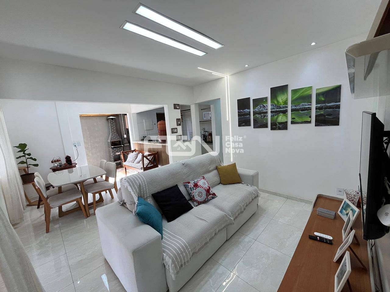 Sala integrada à cozinha e à área gourmet