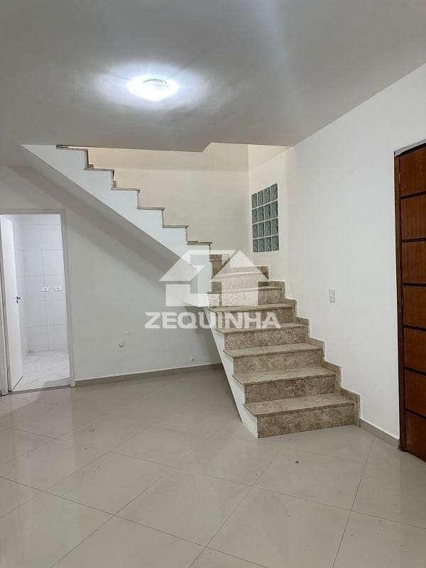 Sobrado em condomínio com 2 dormitórios, piso laminado. 1 banheiro com box e gabinete. Cozinha com armários. Sala 2 ambientes. 2 vagas de garagem. Quintal com churrasqueira