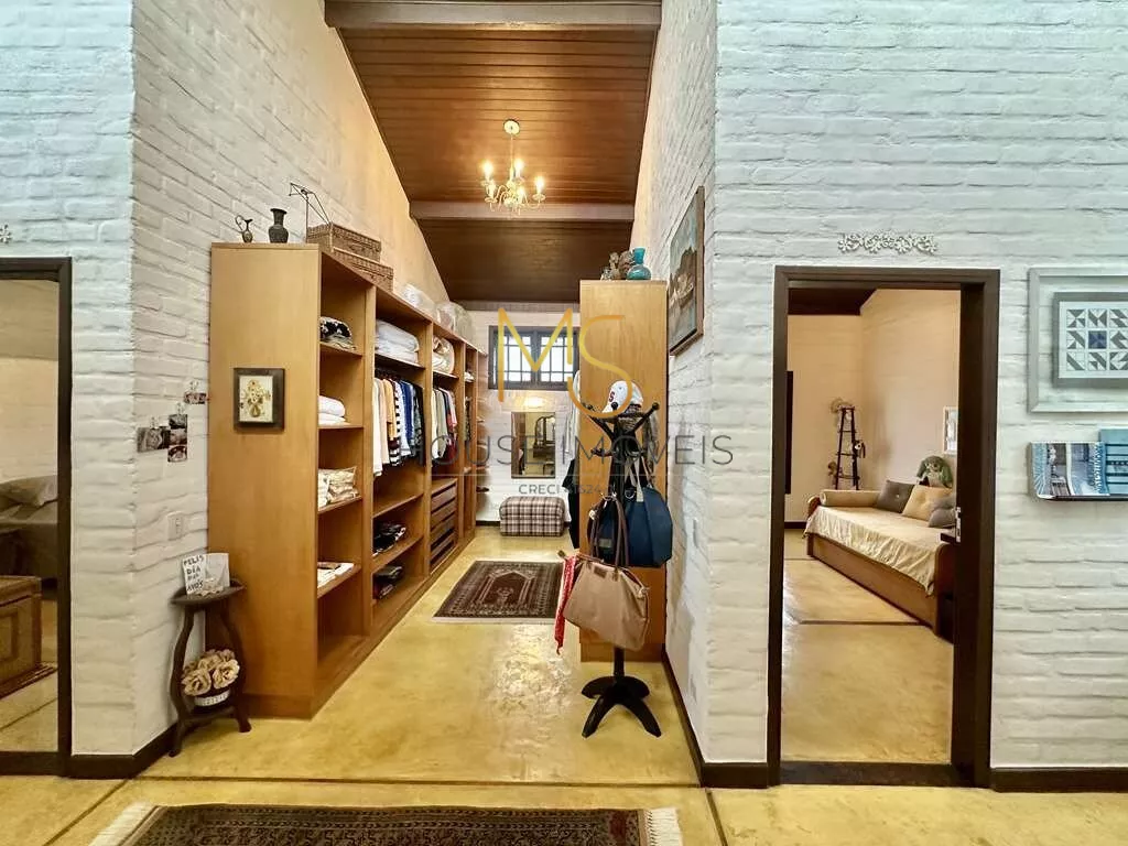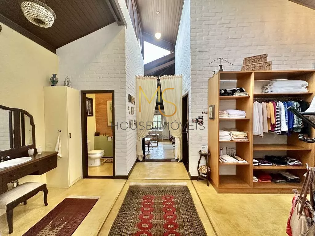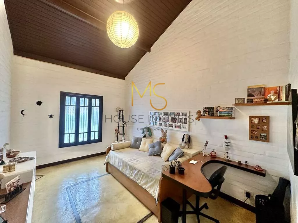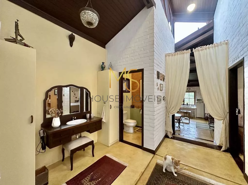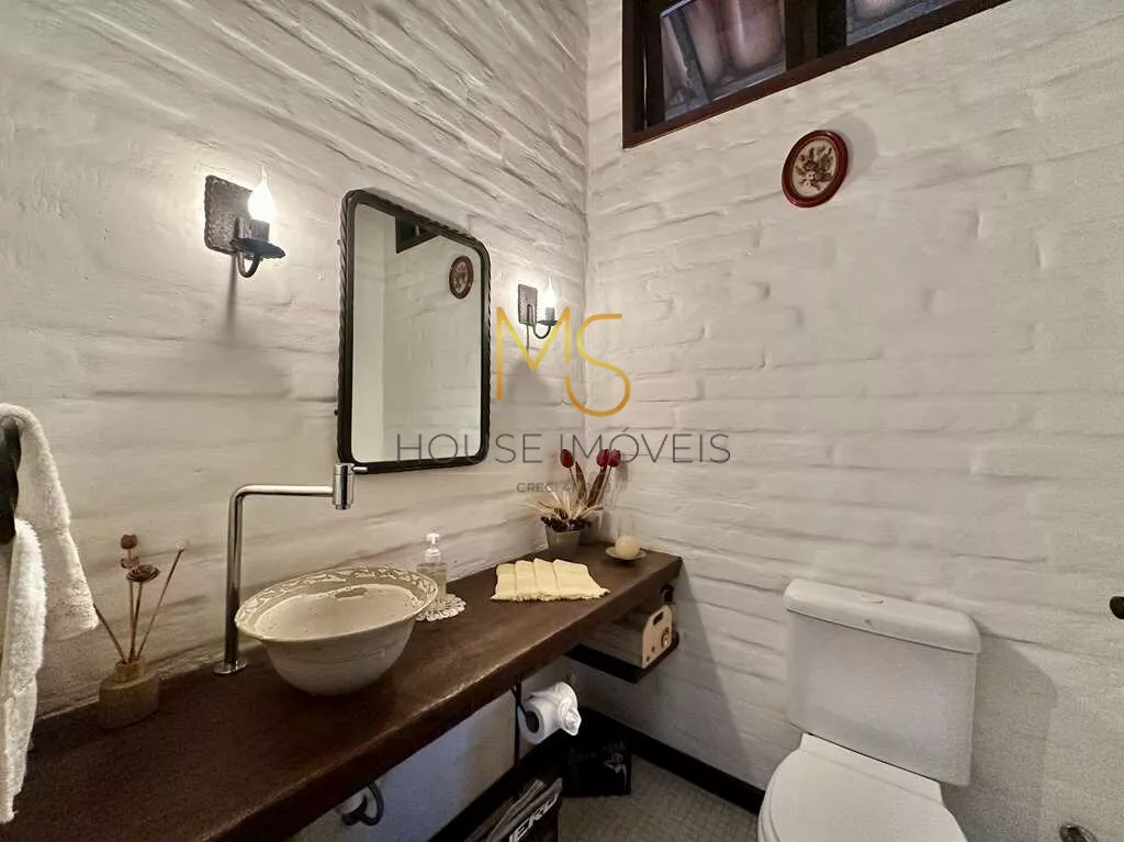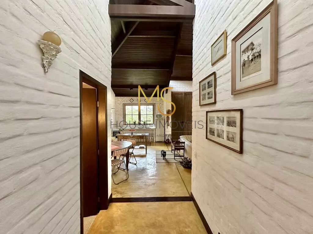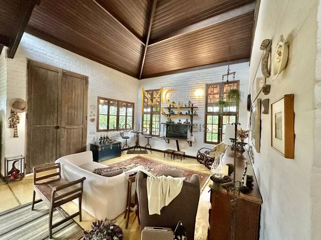 Um Verdadeiro Achado: "Simples e Elegante" - Porteira FechadaSe essa casa se adequa ao seu estilo e tamanho, não perca a oportunidade de conhecê-la!Linda e única, com o conceito "menos é mais", esta propriedade é vendida com porteira fechada e transborda personalidade. A casa vem completamente mobiliada, incluindo móveis, utensílios, tapetes e a maioria dos quadros, com a remoção apenas de objetos pessoais e algumas obras de arte.Mais do que uma casa, você estará adquirindo um conceito, um estilo de vida e uma história. Tudo nesta casa foi pensado para oferecer uma experiência única: pela localização, condomínio, passando pela escolha do terreno, o processo construtivo, a decoração e a manutenção impecáveis!Imóvel ideal para um casal com um filho, para casais sem filhos ou para solteiros, que apreciam a natureza e a tranquilidade. Esta casa semi-térrea possui uma planta versátil que permite adaptações ou ampliações. Há um espaço planejado para uma piscina no jardim lateral.A construção apresenta tijolos comuns grandes, que receberam um acabamento especial tanto na parte externa quanto interna. Os pisos são de cimento queimado rústico em tom amarelado, fulget (que é um revestimento que não regulariza superfícies, apenas acompanha a superfície existente, ou seja, diferenças de nível ou de espessuras, saliências ou cavidades, conservarão tais características mesmo após a aplicação do revestimento) e pastilhas de vidro transparente. As portas e janelas são de madeira e vidro, algumas de demolição originais das Docas de Santos, conferindo um charme todo especial ao imóvel.A varanda em "L" é encantadora, perfeita para colocar uma rede e desfrutar de uma vista espetacular do pôr do sol. A casa possui pé direito alto, é ensolarada, bem arejada e iluminada. O living é amplo, com cinco ambientes integrados, incluindo estar, TV, jantar, bar e cozinha, com porta de correr integrada à lavanderia.O lavabo é um destaque à parte, com tampo de madeira maciça rústica e pia exclusiva em cerâmica artesanal. O hall íntimo, com um conceito de uso coletivo, inclui espaço para um pequeno escritório, dois dormitórios amplos e um closet coletivo com dois grandes armários.O banheiro coletivo é diferenciado, com três módulos independentes integrados: um módulo fechado com chuveiro e hidro, um módulo central aberto com lavatório externo, penteadeira antiga, tampo de madeira, espelho e dois armários, e um módulo fechado com vaso sanitário.A área de serviço é aberta e ensolarada, com dois tanques externos e uma lavanderia fechada equipada. Há um quarto e banheiro de serviço com acesso externo, além de um portão automático. O espaço para estacionamento comporta cinco automóveis em um pergolado com trepadeira florida, além de uma grande rampa.O jardim, recentemente renovado, possui um lindo paisagismo com uma castanheira portuguesa que atrai esquilos, dois...