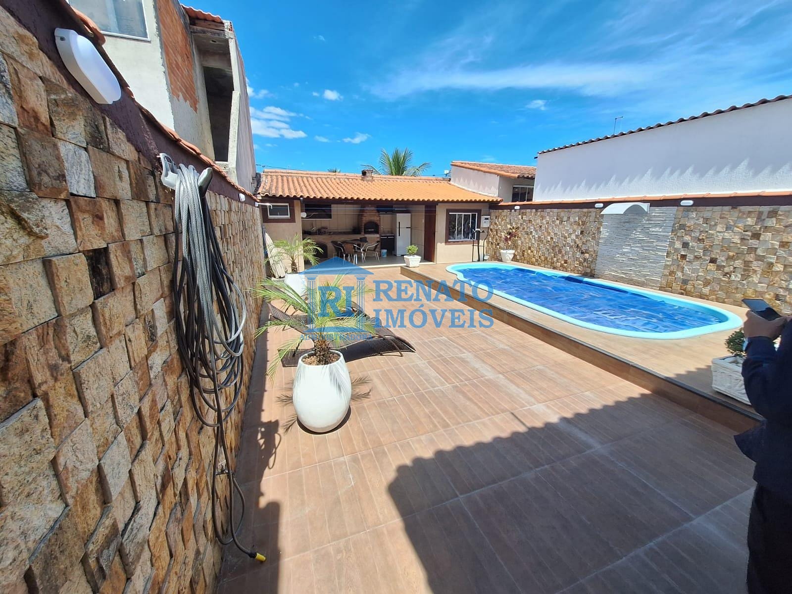 A residência dispõe de garagem para até três veículos, varanda, piscina, área gourmet com churrasqueira, banheiro externo e lavanderia. Em seu interior, conta com sala em dois ambientes, cozinha, banheiro social e dois quartos, sendo um deles suíte com closet. Imóvel ideal para quem busca conforto, funcionalidade e qualidade de vida em uma região tranquila.