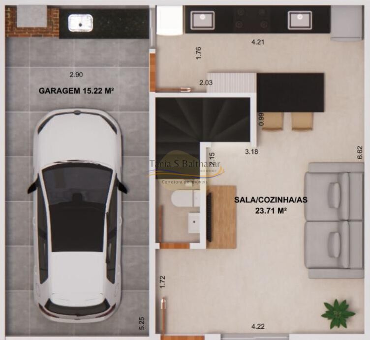 O imóvel contempla no Piso Térreo, Sala, Lavabo, Cozinha conceito aberto, Área de Serviço e Garagem Fechada com Churrasqueira. 02 entradas Social e Serviço. Piso Superior com 02 Suítes. Infraestrutura para ar-condicionado. Gás encanado.