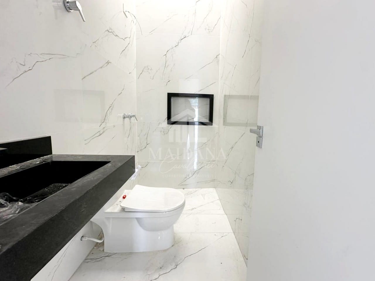 - Banheiro social com bancada em granito e nicho