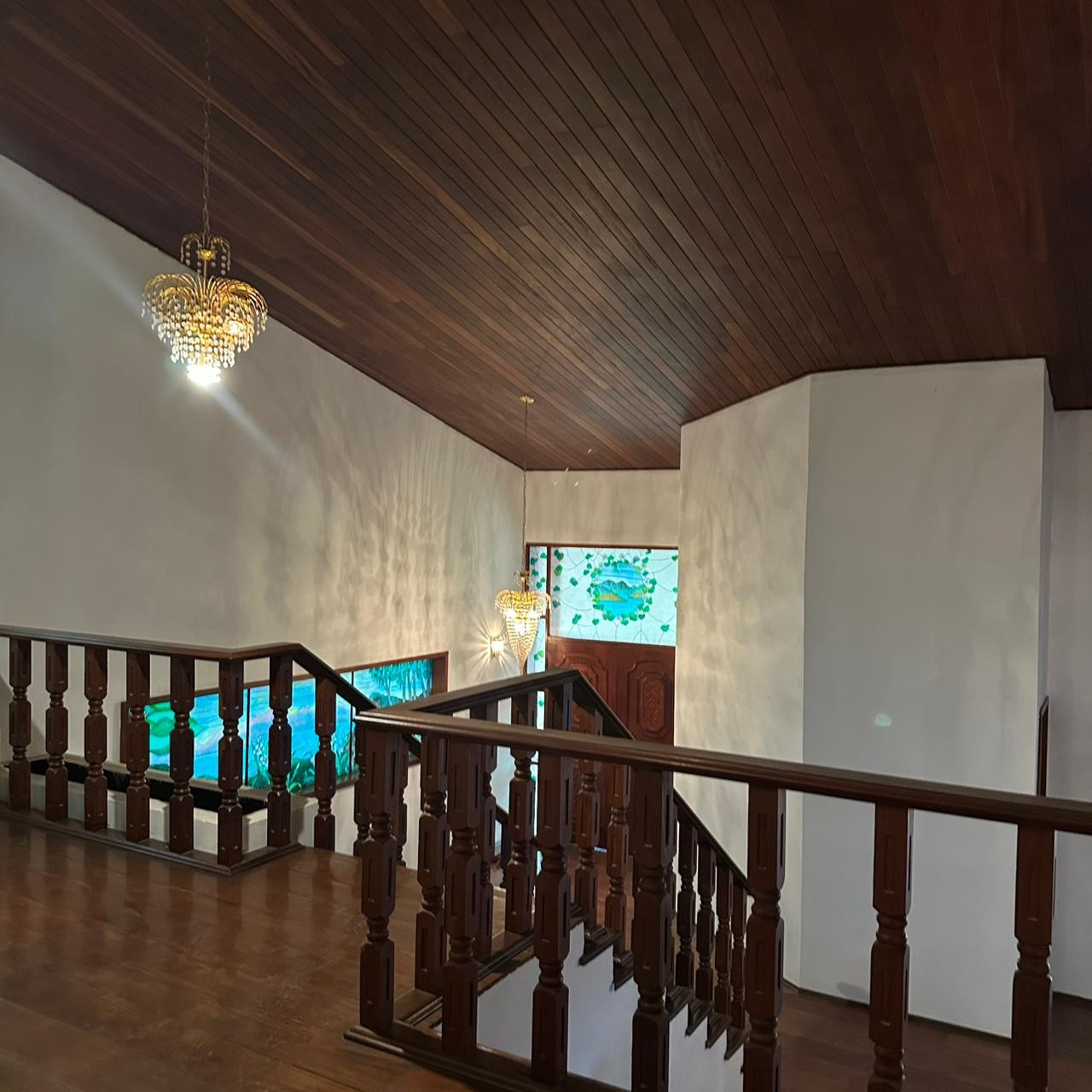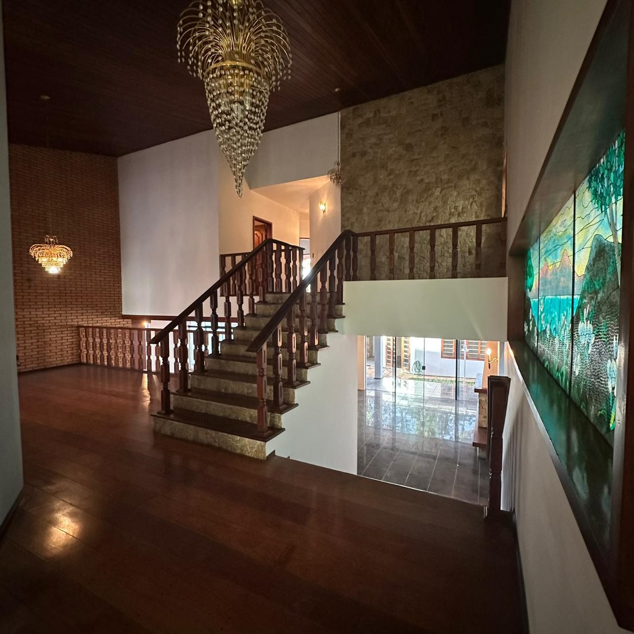Amplo espaço para até 04 salas, com vitrais coloridos, paredes em pedra e acabamento em madeira nobre;