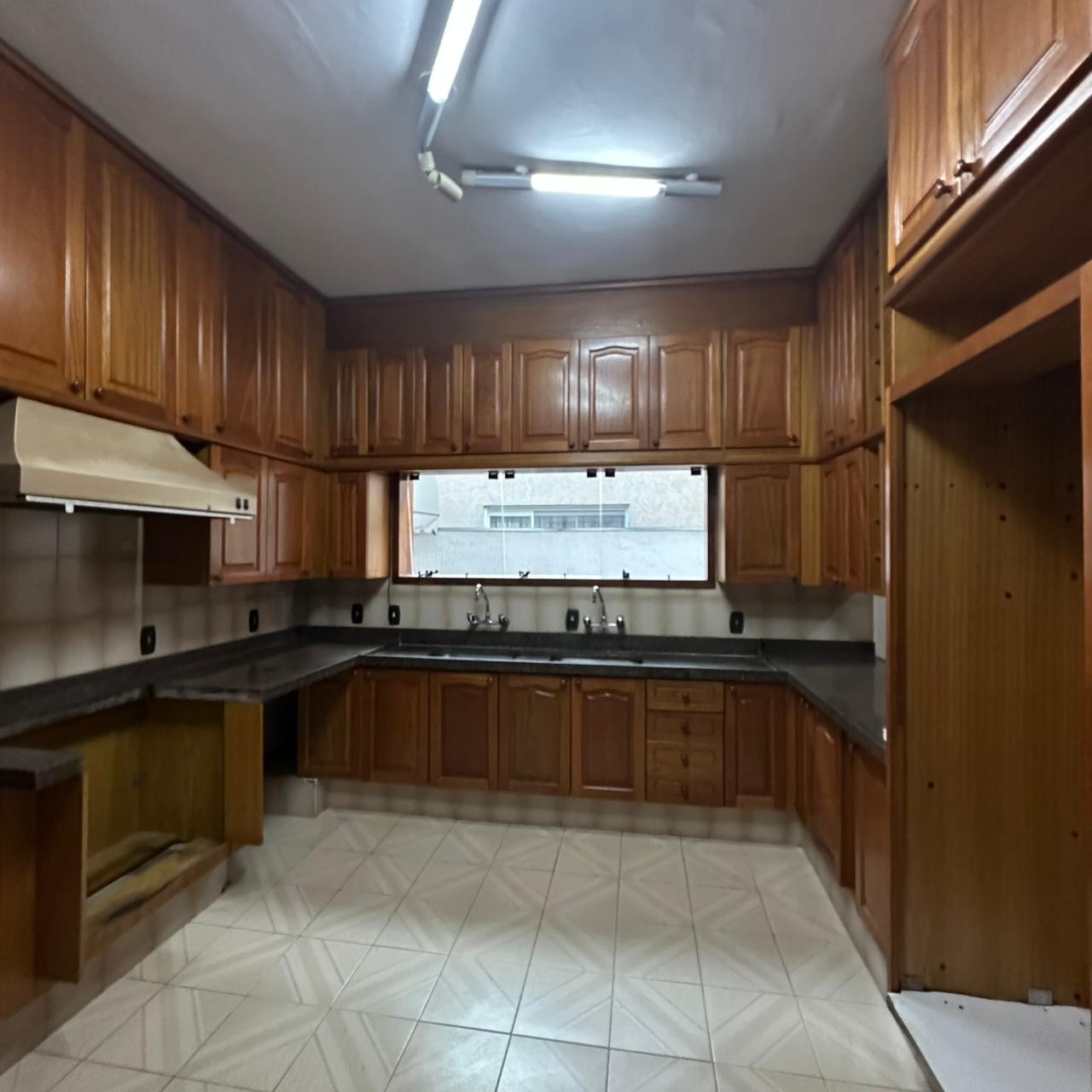 Cozinha com modulados, planejada para embutir fogão de 6 bocas, máquina de lavar louças; e duas geladeiras