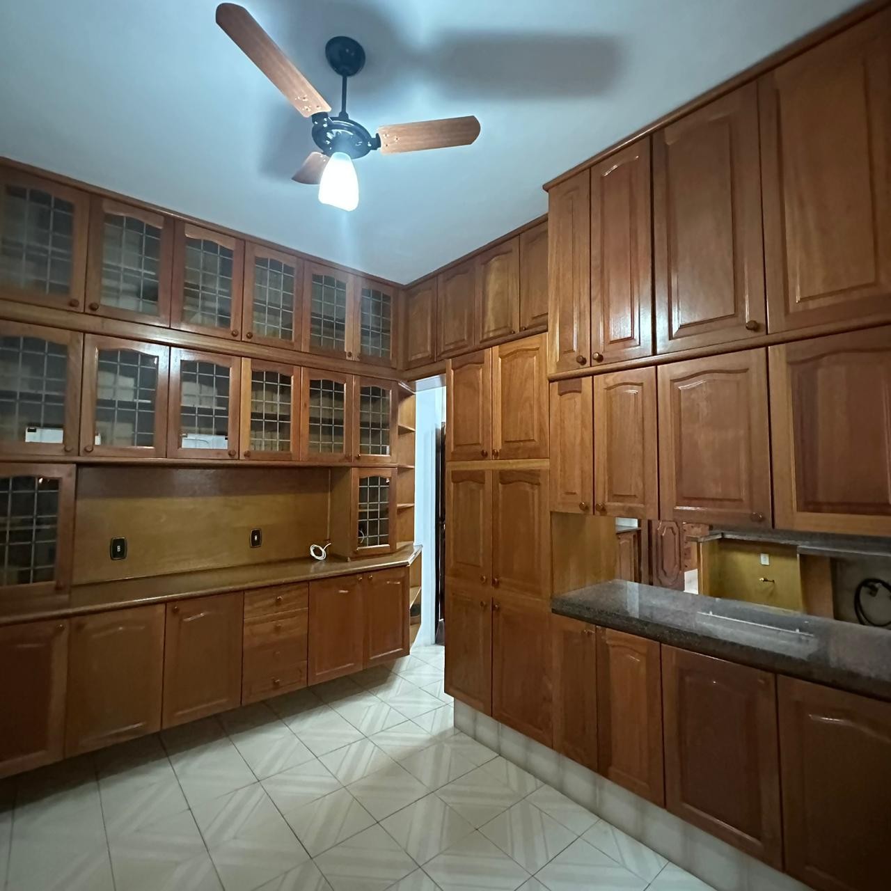 Grande despensa com prateleiras de mármore até o teto;