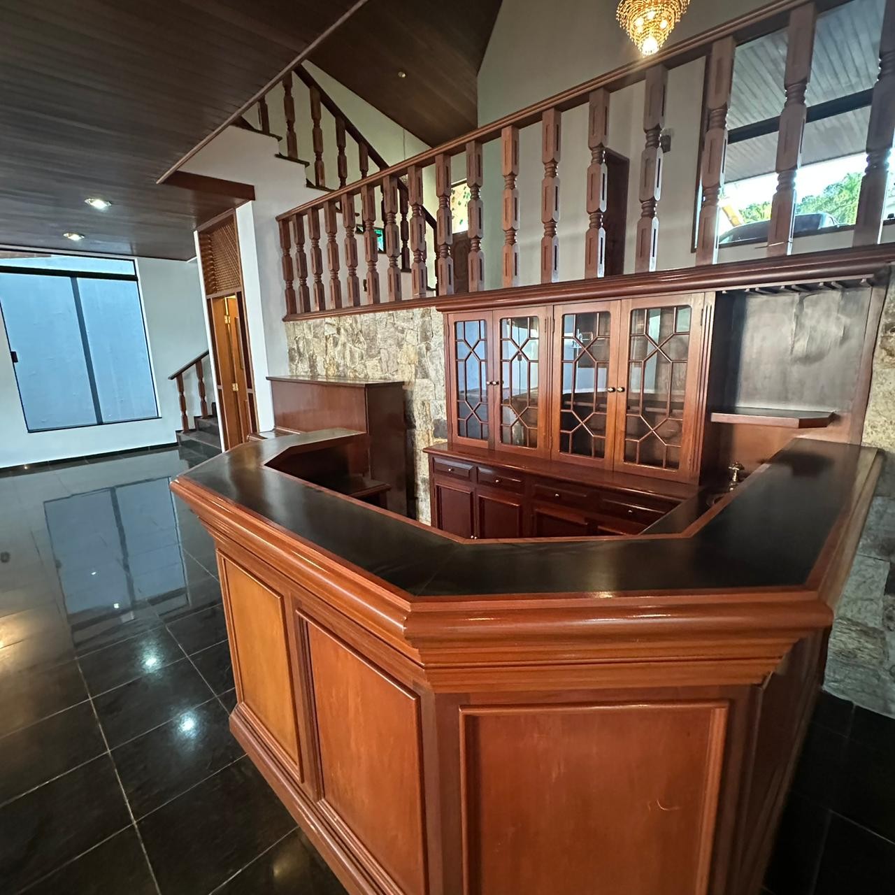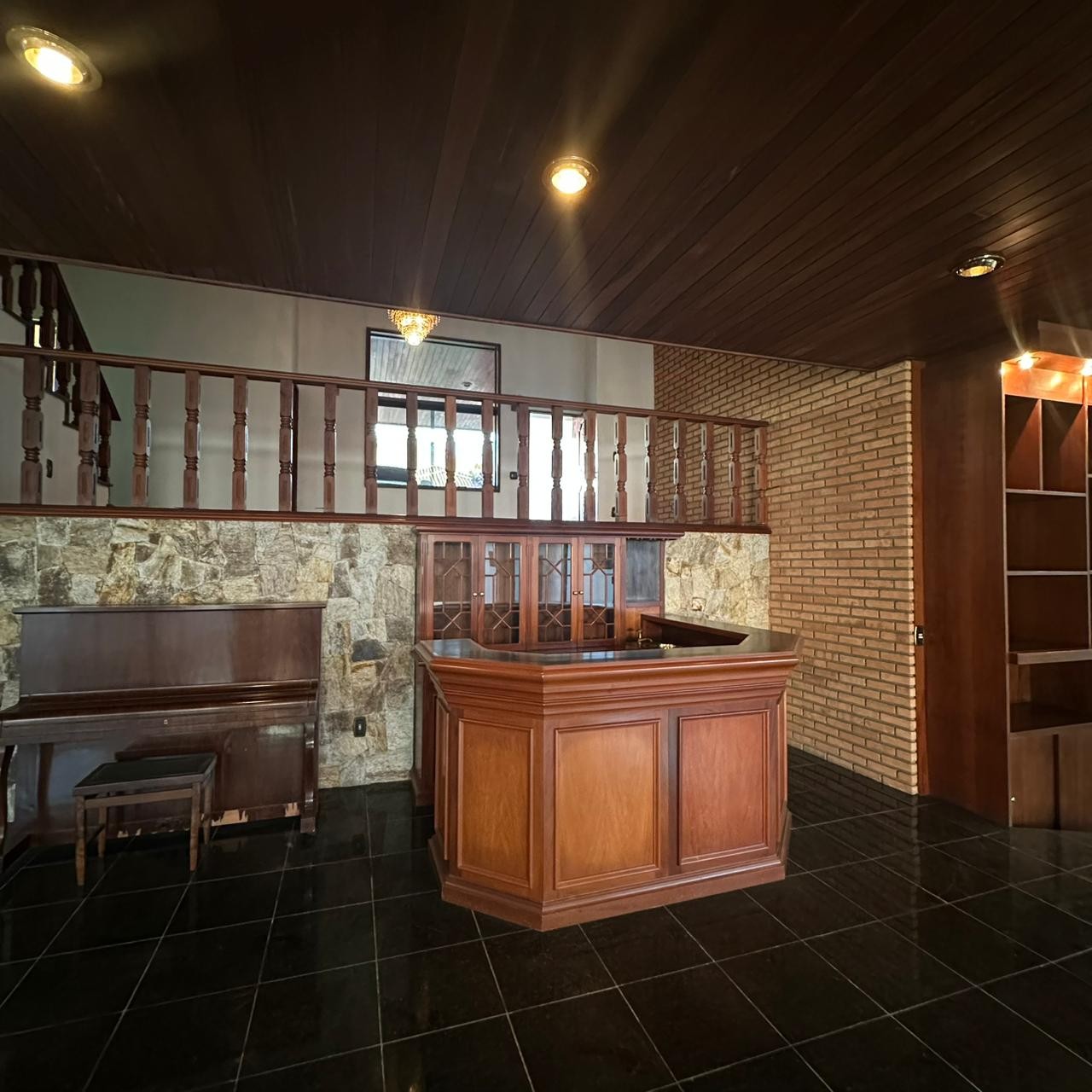 Bar em madeira integrado;