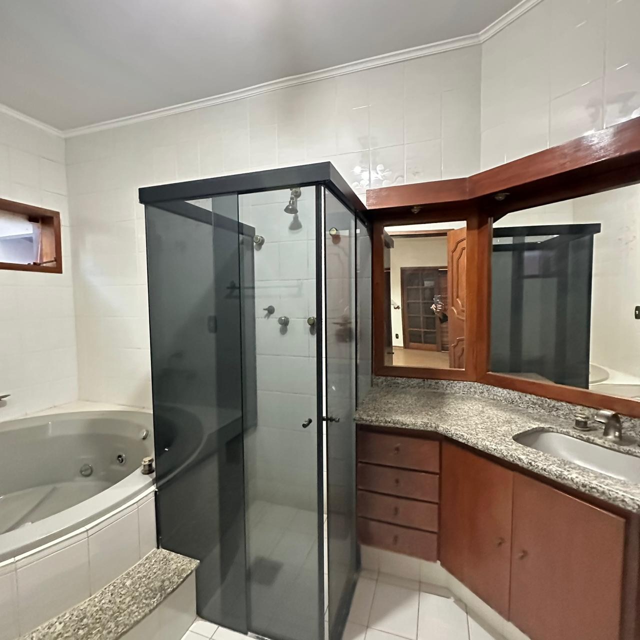 03 suítes avarandadas com modulados, sendo 02 com closet e banheira redonda de hidromassagem + box separado;