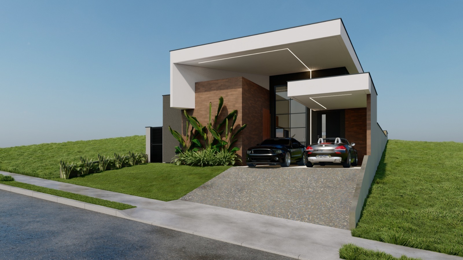 Garagem coberta para 2 veículos, com excelente acabamento e fácil acesso;