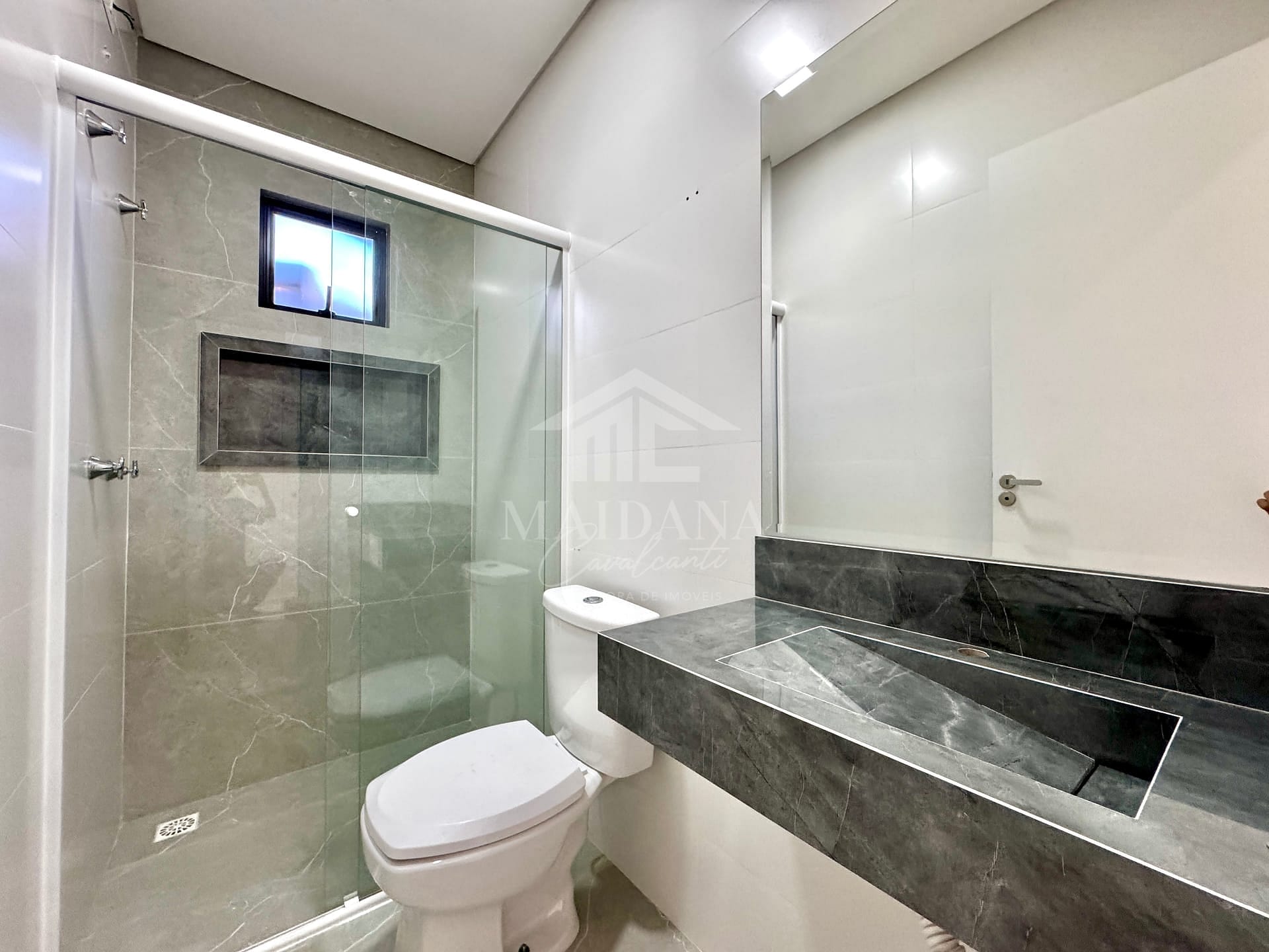 - Banheiros completos com box, nicho, pia em porcelanato e espelho