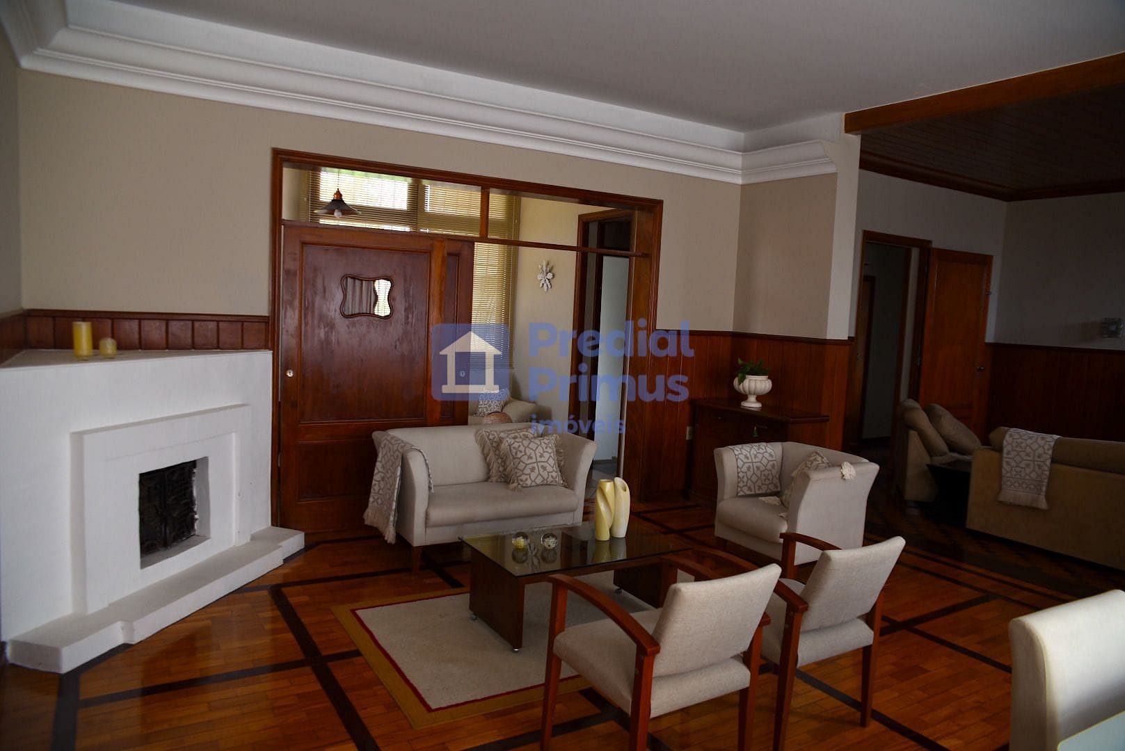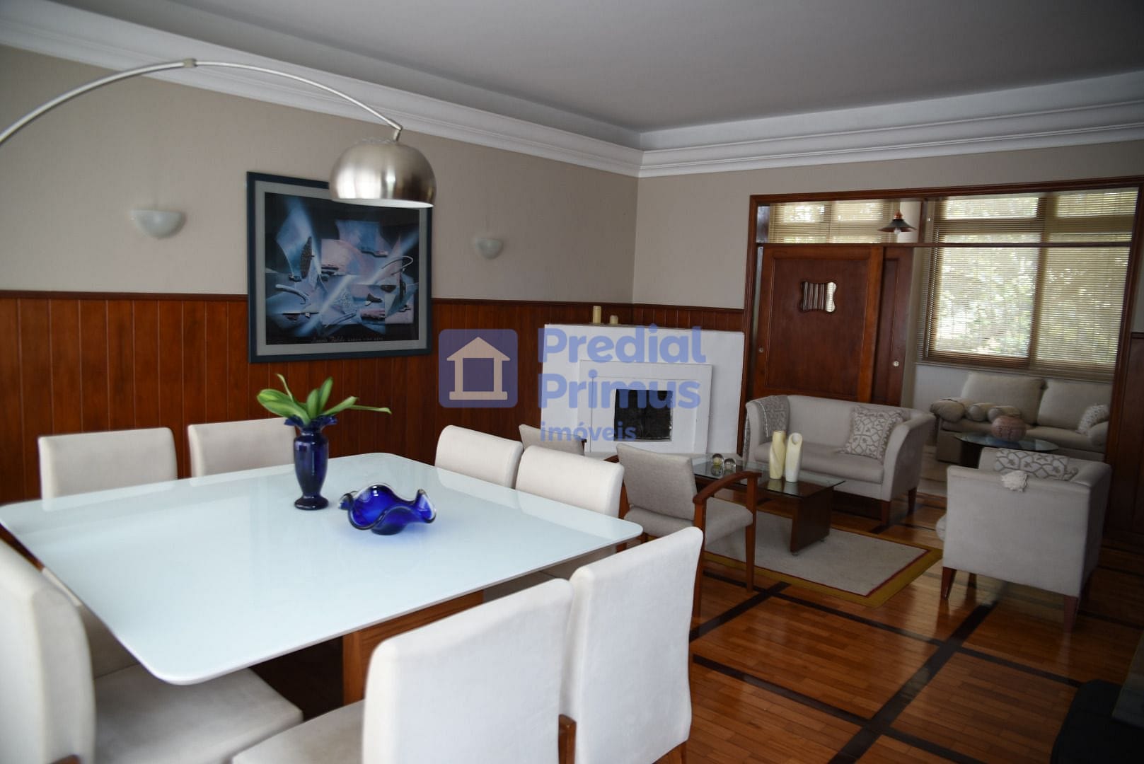 Sala em 3 ambientes, com lareira para noites aconchegantes